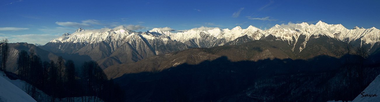 Юля, для первой панорамы, я бы сказал, очень хорошо ! По ширине не стоит превышать 1200 пикселов (оптимально для большинства мониторов и полностью помещается). Тень на ПП считается не правильным, лучше если она будет не ближе среднего плана, тем более, что здесь она очень глубокая. Проработку деталей в тенях можно было бы улучшить, используя градиентный серый фильтр. При съёмке пейзажей с большим диапазоном яркостей неба и земли (или воды) он обязателен (исправить потом это будет не возможно).