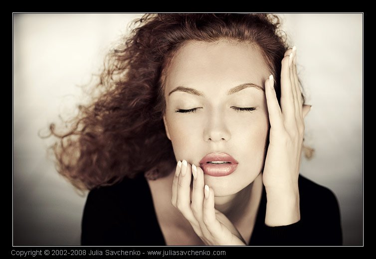 Красивая девушка и только. Нет свето-теневого рисунка, подчеркивающего достоинства модели. И опять же кадрирование - ну зачем так резать руку, включите ее в кадр полностью, при чем эта рука более менее правильно отражает чувства, а вот вторая не понятно то ли от света загораживается, то ли центром ладони что- то к лицу прижимает.