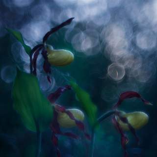 Venus's slippers - our Northern orchids - a rare flower listed in the Red book (Cypripedium calceolus) family Orchidaceae. Blooms after at least 15 years of growth! Freshly photographed tonight! )