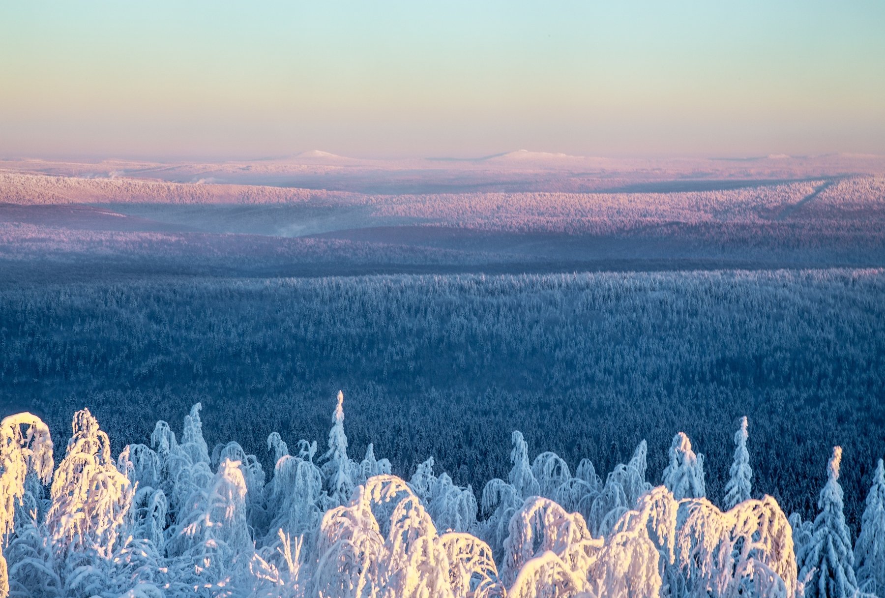 зима, закат, мороз, снег, Урал, Савицкий Ян