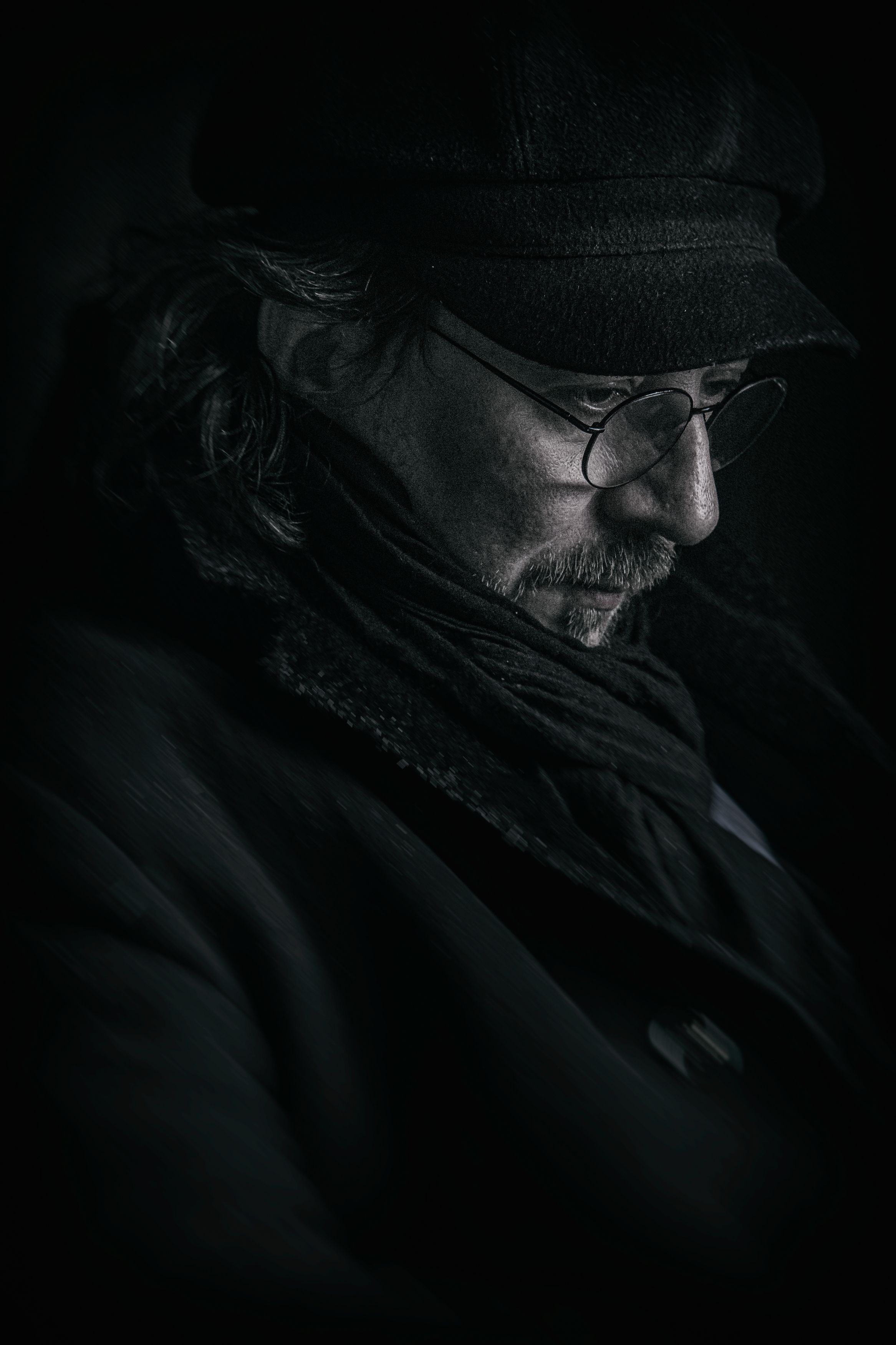 A quiet intensity in the shadowed gaze — the light finds just enough to reveal depth, not drama. The textures of cloth and skin speak softly, the angle feels intimate, almost confidential. A portrait that holds its own weight without shouting. 👁️🗨️