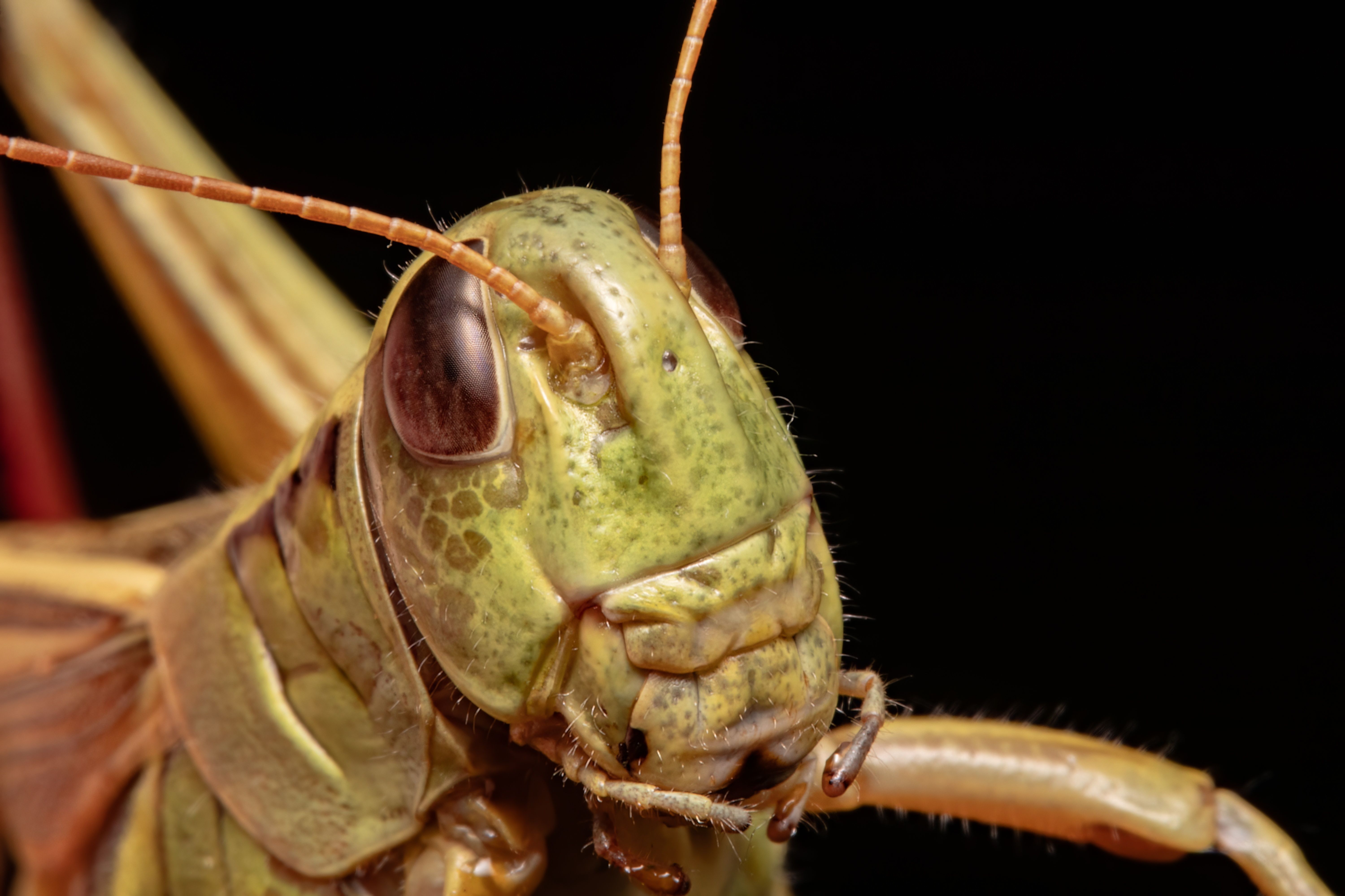 Small cricket I photographed in macro. Since my macro is only 1X, the difficulty was to get close enough without frightening my friend the cricket. After a few attempts, he finally let me take my photo.... where he was tired of me running after him lolll