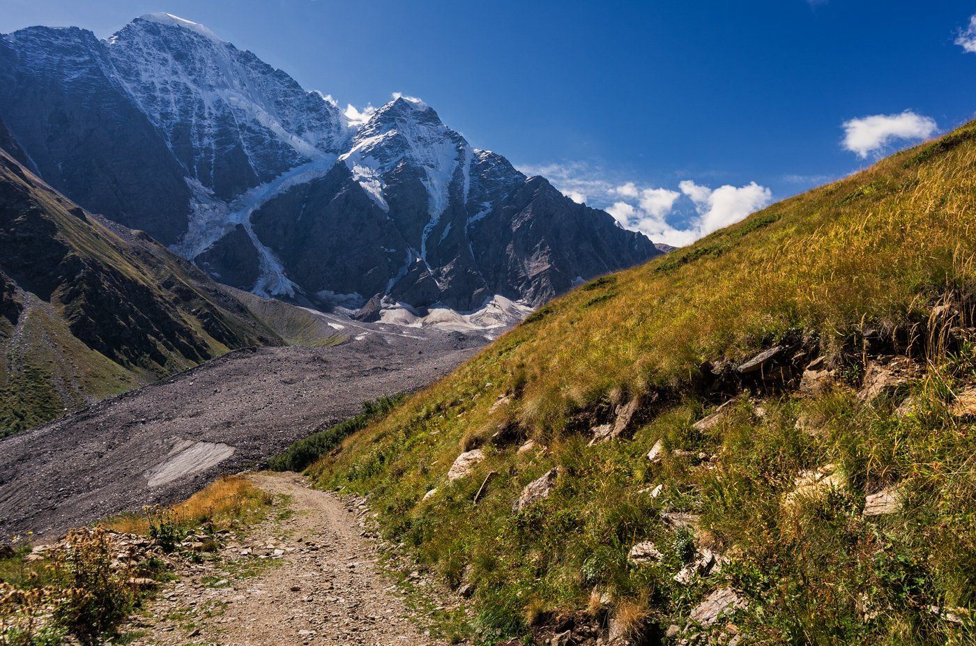 Снято в горах Приэльбрусья, при подъёме на Чегет, перед вами ледник "Семёрка", вершина Донгуз-Орун.