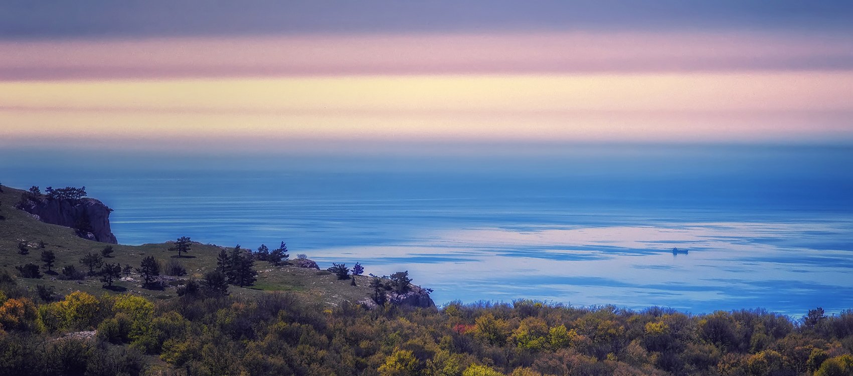 снимал с высоты плато Ай-Петри, за деревцами сразу обрыв 1200 м до моря... :)