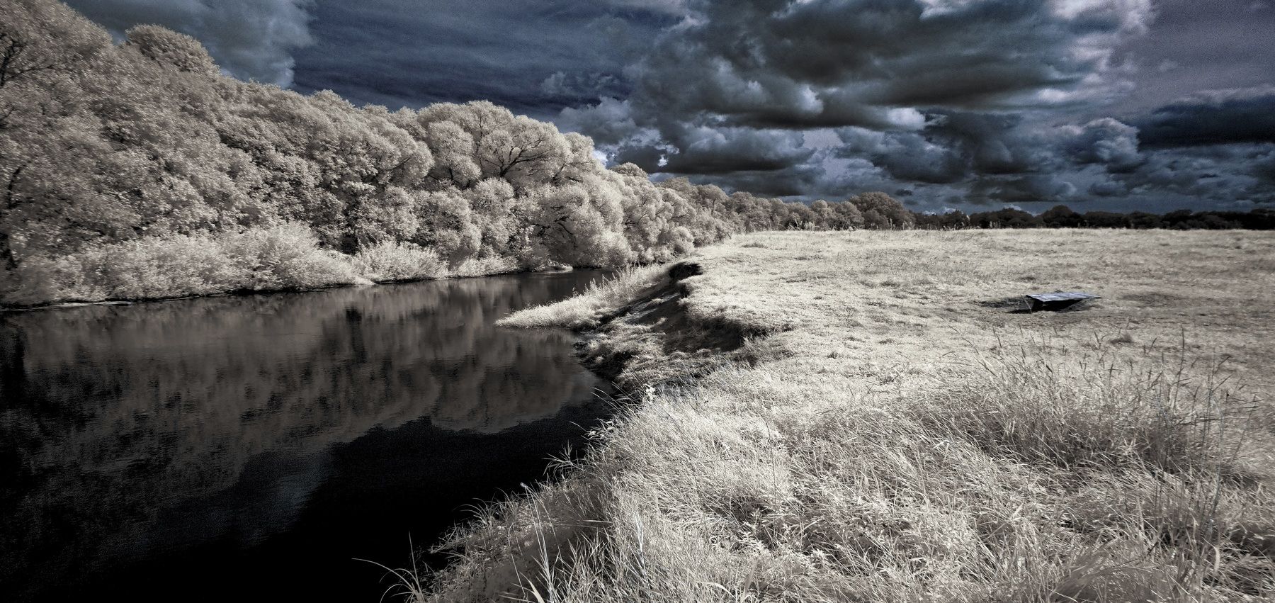 Август на маленькой речке. Беларусь. Инфракрасная съемка.