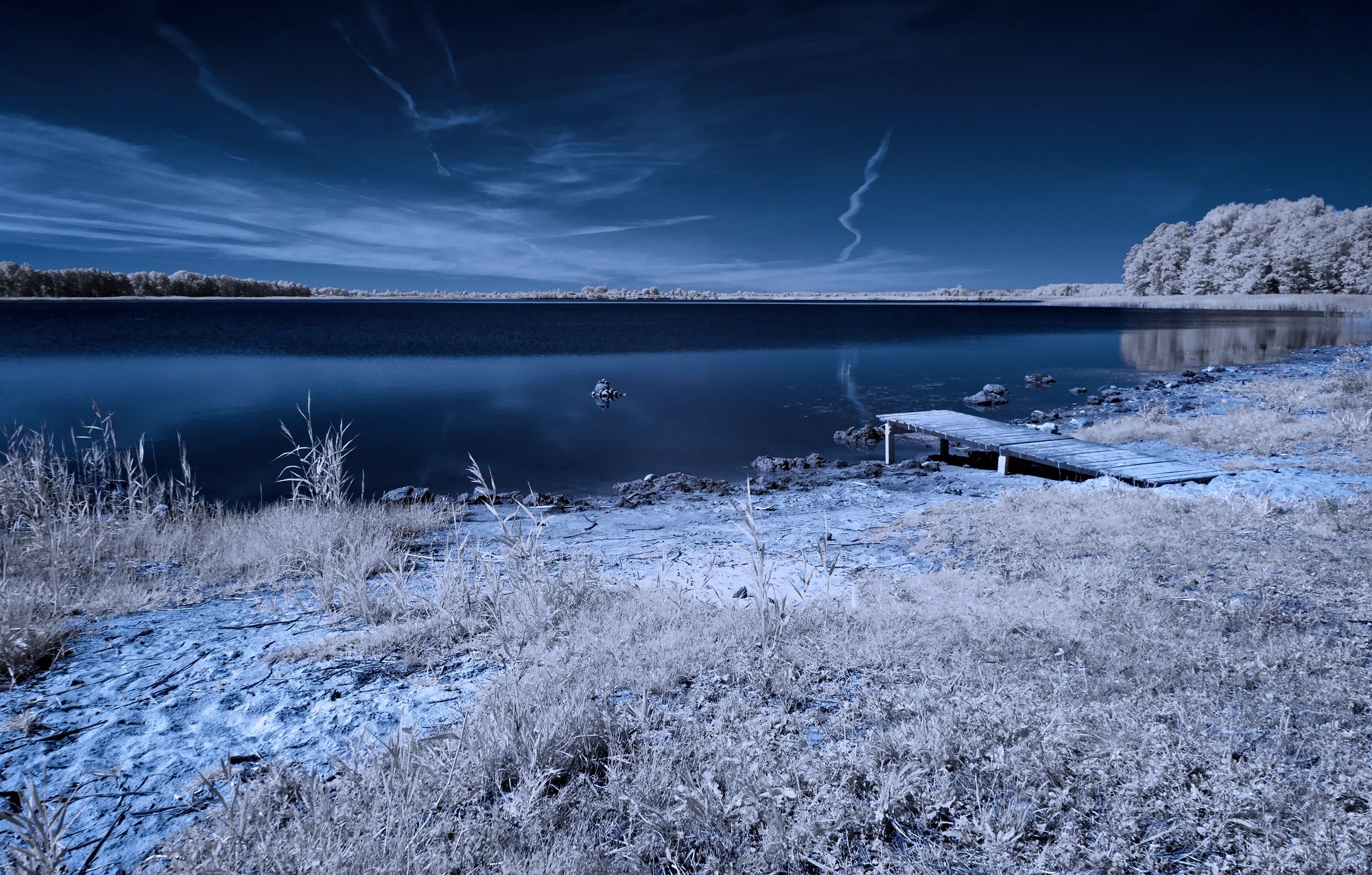 Лето на лесном озере. Инфракрасная съемка.