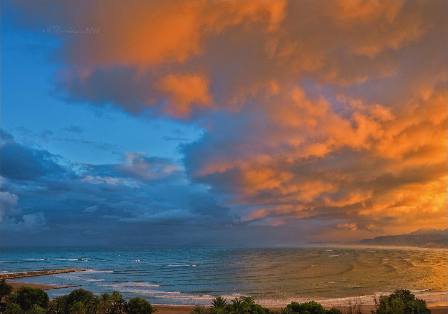 закат, море, небо, горы, волны, облака, Sergey Drobkov
