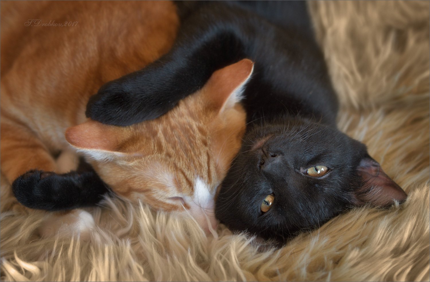 кошки, рыжий, портрет, чёрный, Sergey Drobkov