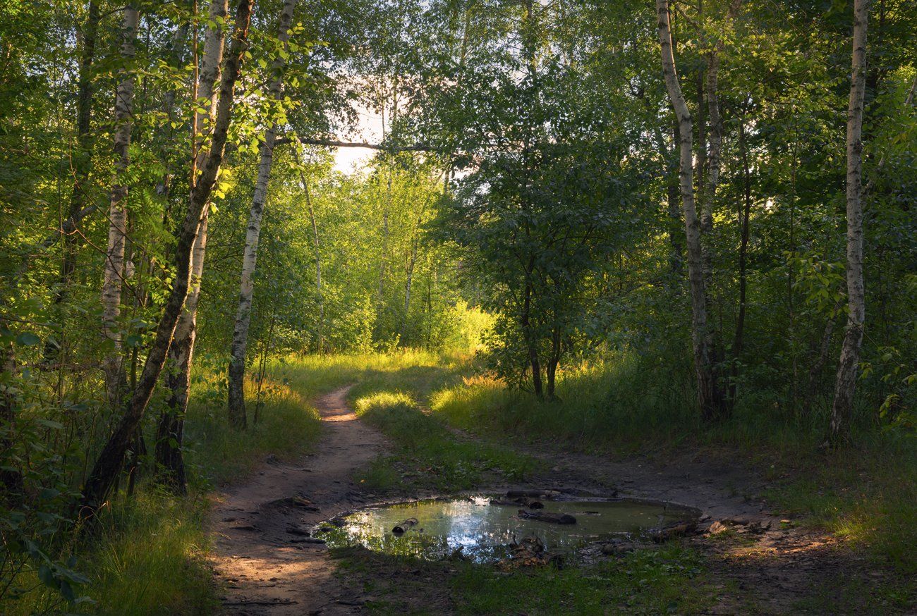 лес, лето, июль, тропа, лужа, берёзы, Галанзовская Оксана