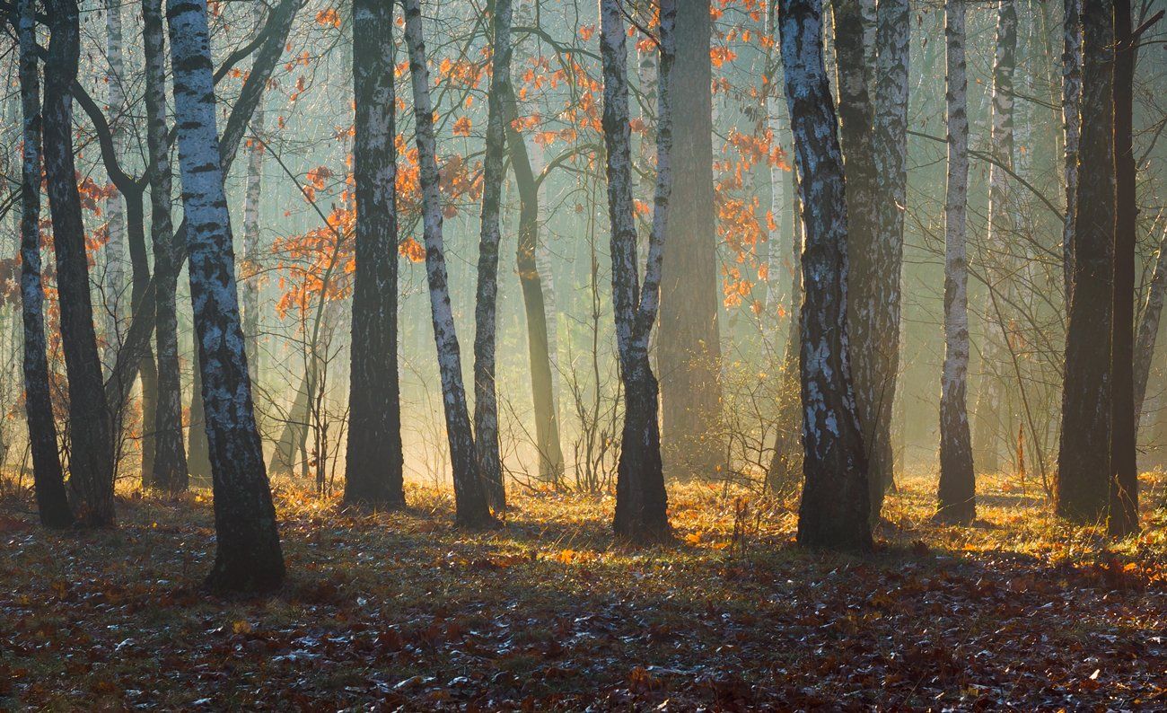 лес, весна, март, утро, рассвет, лучи, туман, испарина, берёзы, Галанзовская Оксана