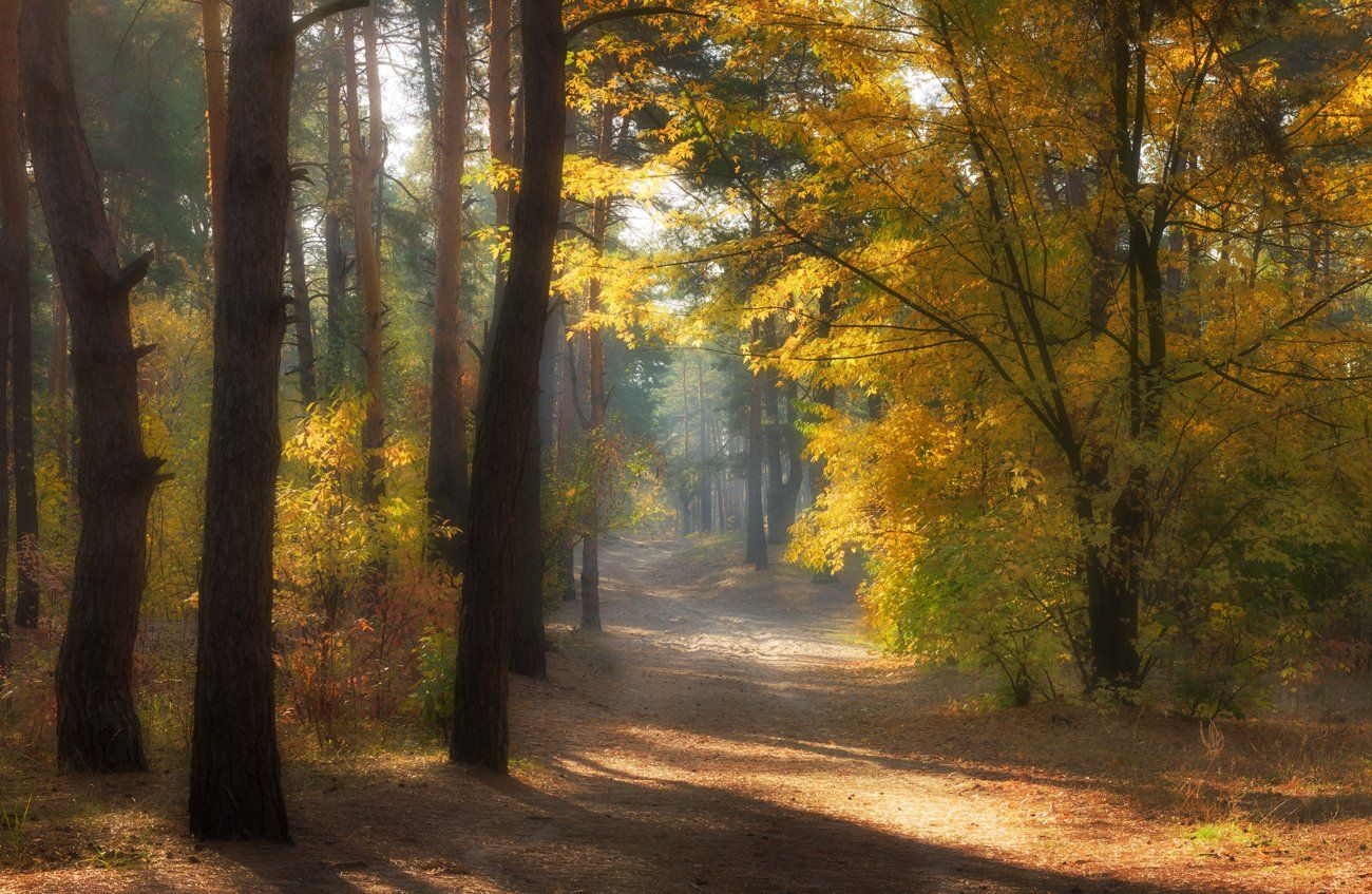 лес, осень, октябрь, утро, туман, рассвет, солнце, клен, Галанзовская Оксана