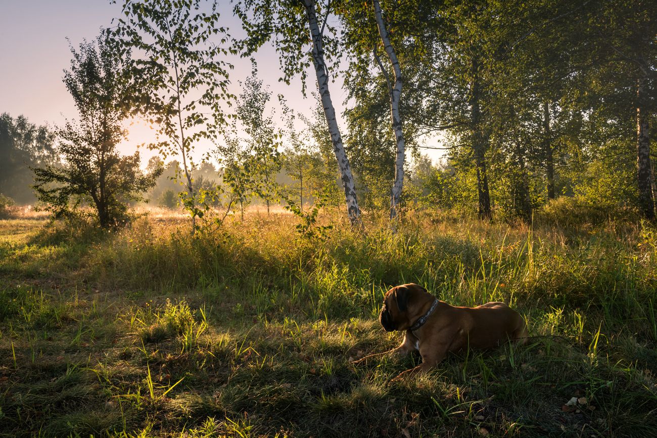 Море удовольствия получили от встречи рассвета, только потом боксерчику плохо, у него на траву аллергия