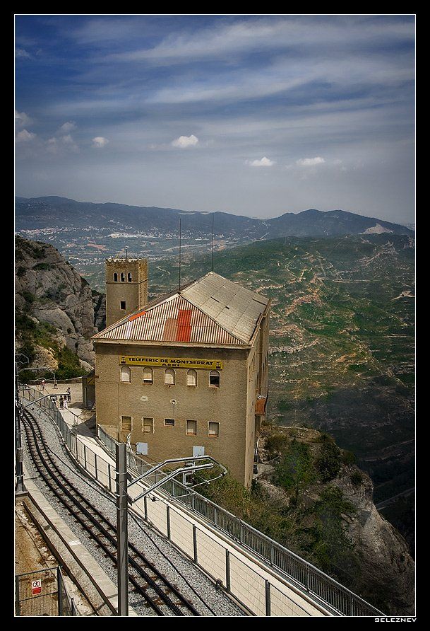 Тут видна часть железной дороги, которая идет к монастырю на горе Монтсеррат в Каталонии. Местные жители называют ее "молния", потому как по центру этой дороги сделан дополнительный рельс, напоминающий по форме застежку для одежды (молнию). Данный рельс позволяет поезду не скользить по рельсам на достаточно крутых подъемах и спусках.