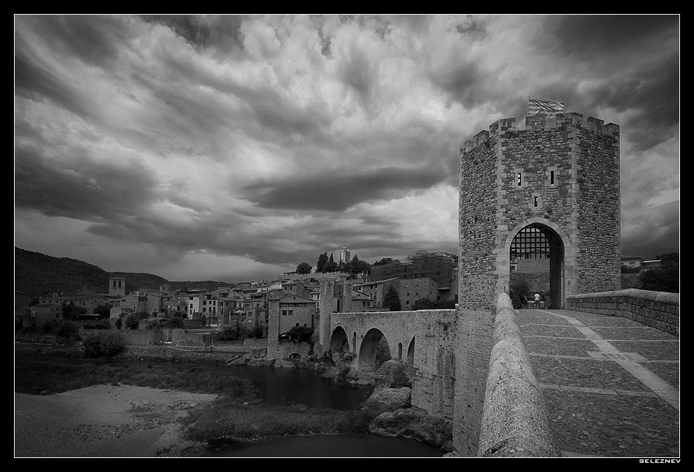 Может стоило повернуться чуть вправо? Башню с воротами взять по ЗС, или 1/3. Тогда снимок более уравновешенным будет, и полоса на дороге с дальним парапетом четче диагонали обозначат. имхо
