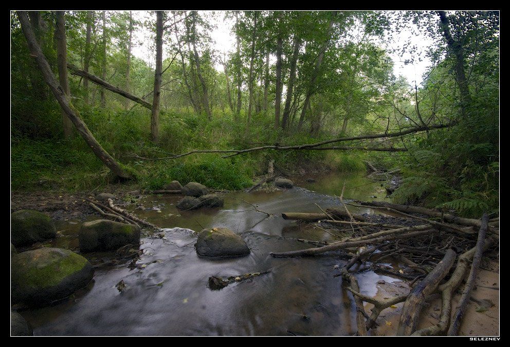 Есть такое место в лесу недалеко от моей дачи, где течет тихая и небольшая речка под неоригинальным названием Мойка. Посреди леса на ней стоит старый разрушенный мост под которым свалены круглые валуны. Ни вверх, ни вниз по течению такого места на этой речке больше нет. Я каждый год туда прихожу, чтобы сделать пару-тройку фотографий. Волшебное, тихое место. Enjoy the silence.