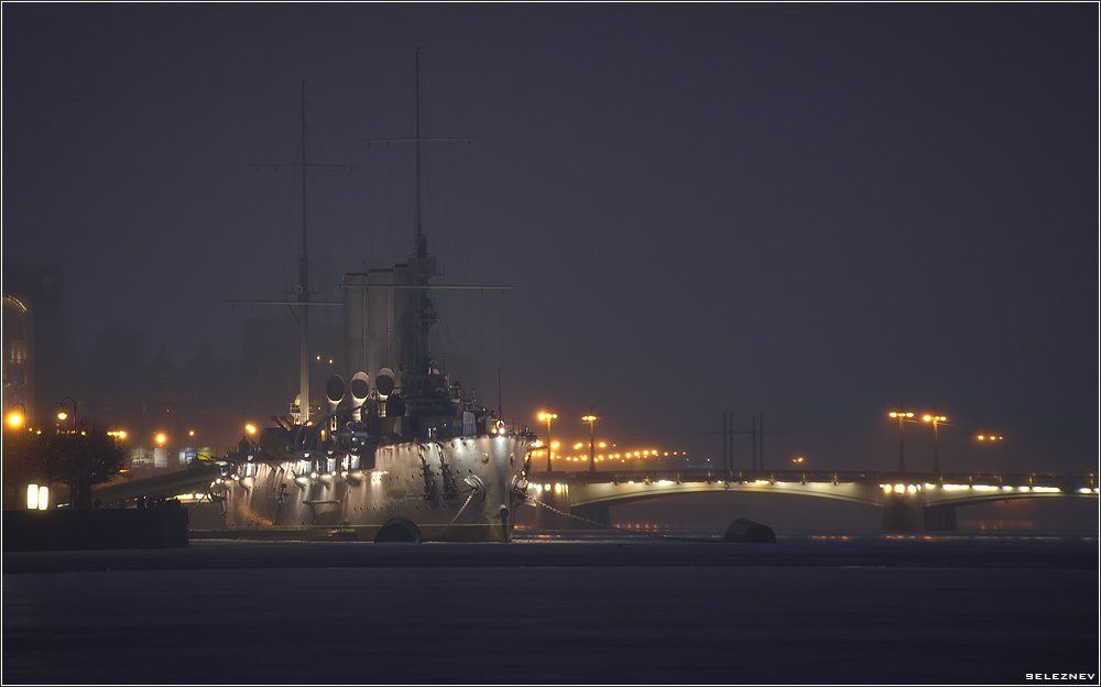 После посещения выставки Юрия Овчинникова, я завез двух Дмитриев в кафе на Пестеля 13, после чего поехал по своим делам. Проезжая по набережной решил остановиться и сделать этот кадр. Снег валил как безумный, штатива у меня с собой не было. Камеру ставил на сумку.