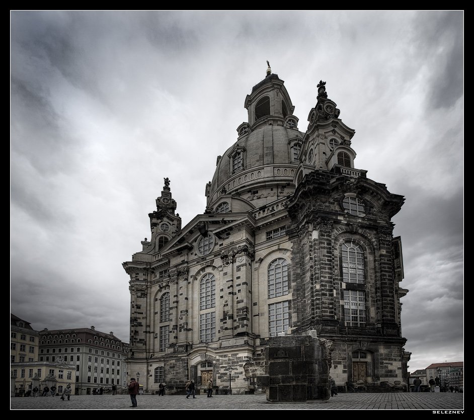 Фрауэнкирхе (протестанская церковь Девы Марии) была построена в стиле барокко в 1746 году арихитектором Бэром по указанию Августа Сильного, еще до того как он принял католичество и стал королем Польши. Считалось, что Фрауэнкирхе была одной из самых красивых церквей в стиле барокко в Германии.