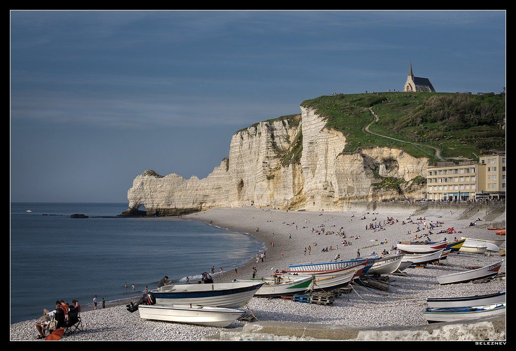 Одно из самых живописных мест сверного побережья Франции у пролива Ла-Манш. Когда собирался в путешествие, мне советовали посетить городок Etretat и посмотреть на слоника. Долго не мог понять где этот слоник, но вчера при работе над фотографией нашел. :)