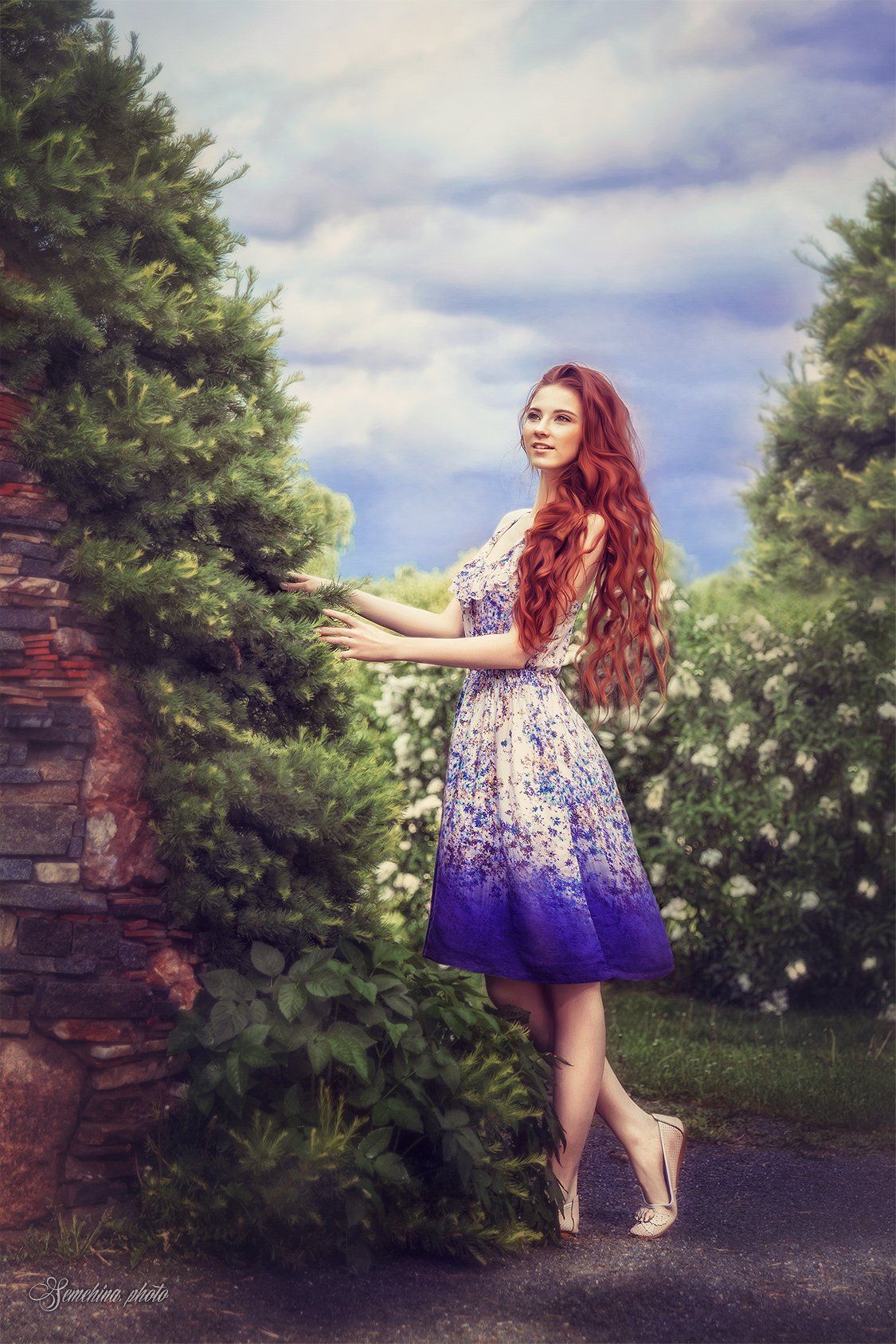 девушка, портрет, гроза, ботсад, лето, платье, красный, рыжие волосы, girl, portreit, red hair, dress, summer, rain, outdoor, Марина Семёхина