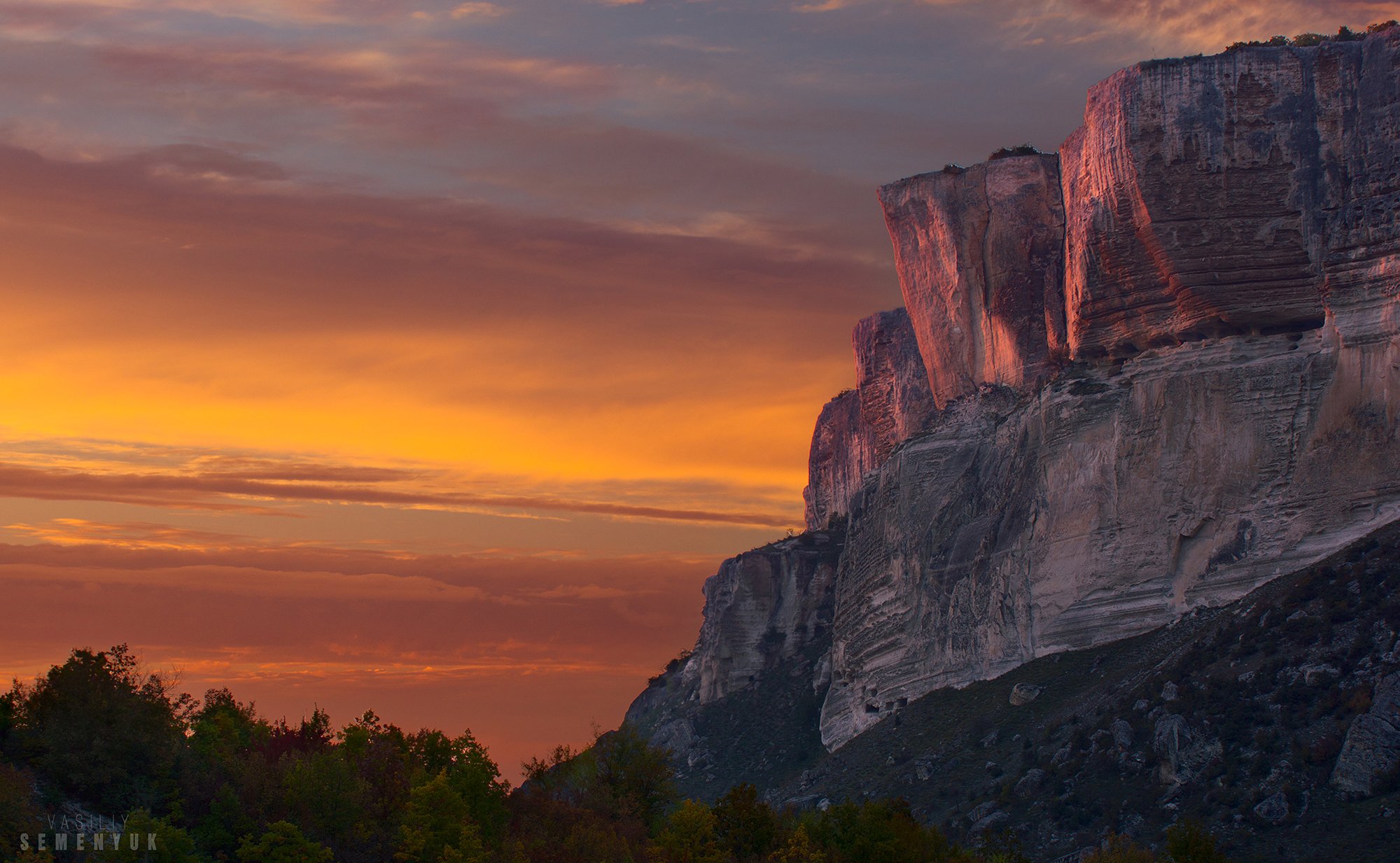 Это ниже облаков и это не река. Справа Пятый грот Качи-Кальона, ряд отверстий под треугольным скальным козырьком, над и за ним - облака подсвеченные закатным Солнцем. Всегда пожалуйста! Прямо под Качи-Кальоном есть асфальтированная дорога, всё это всего в 5 километрах от Бахчисарая. Будете в наших краях, посетите:)