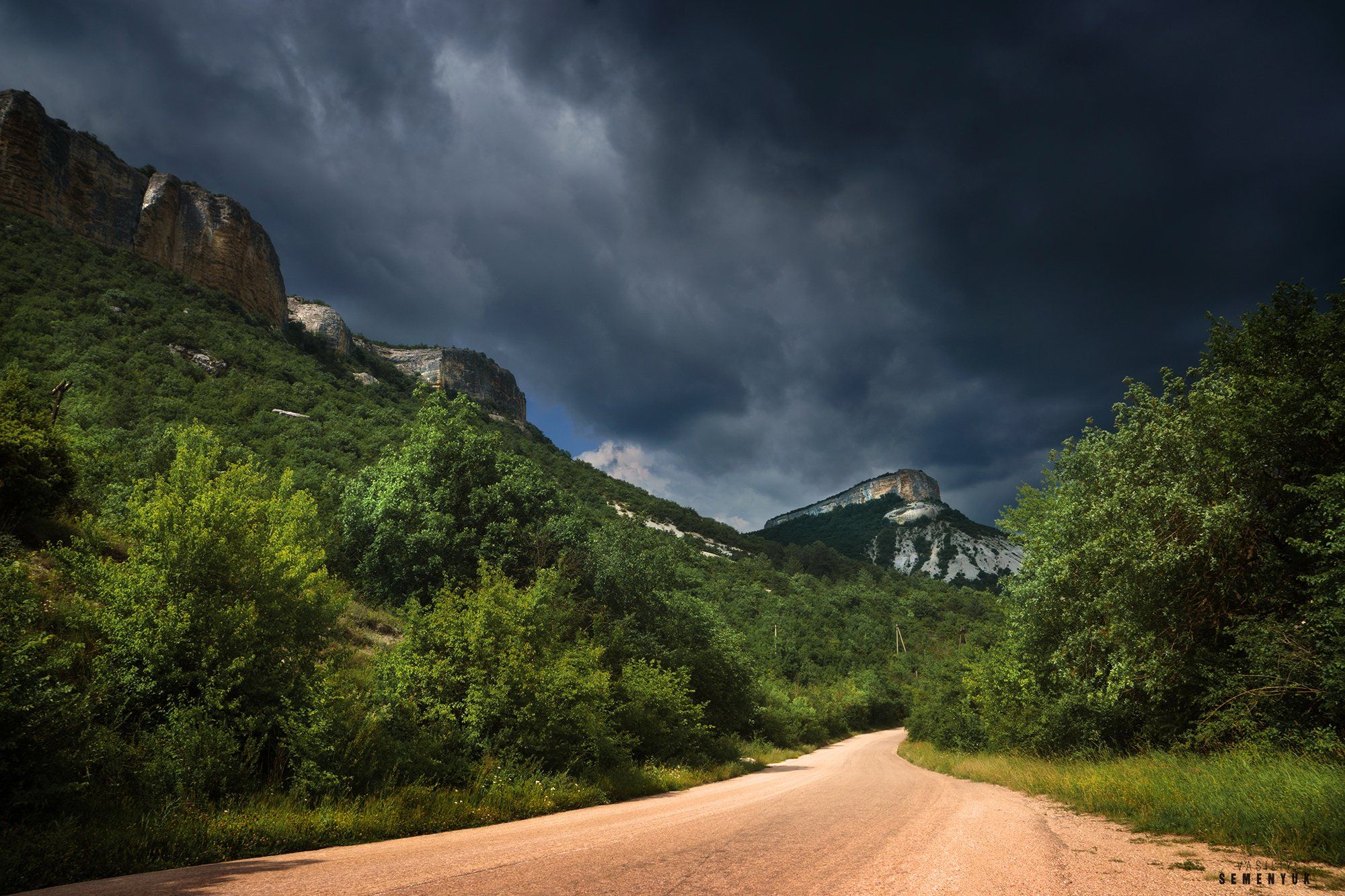 крым, горы, дорога, гроза, облака, кыз-кермен, лучи., Семенюк Василий
