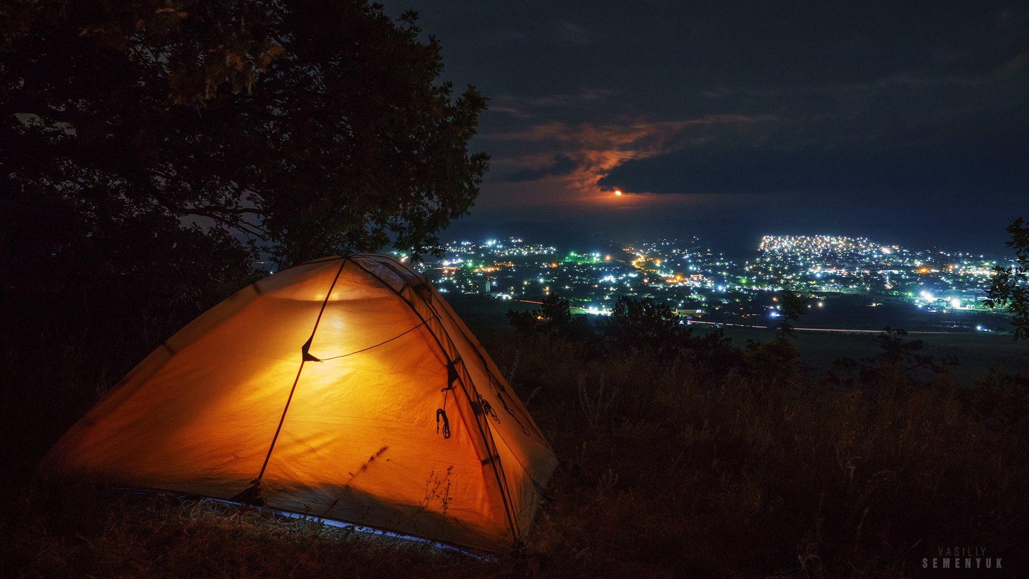 крым, бахчисарай, биюк-яшлау, ночь, городские огни, палатка, луна, длинная выдержка, ночное фото., Семенюк Василий