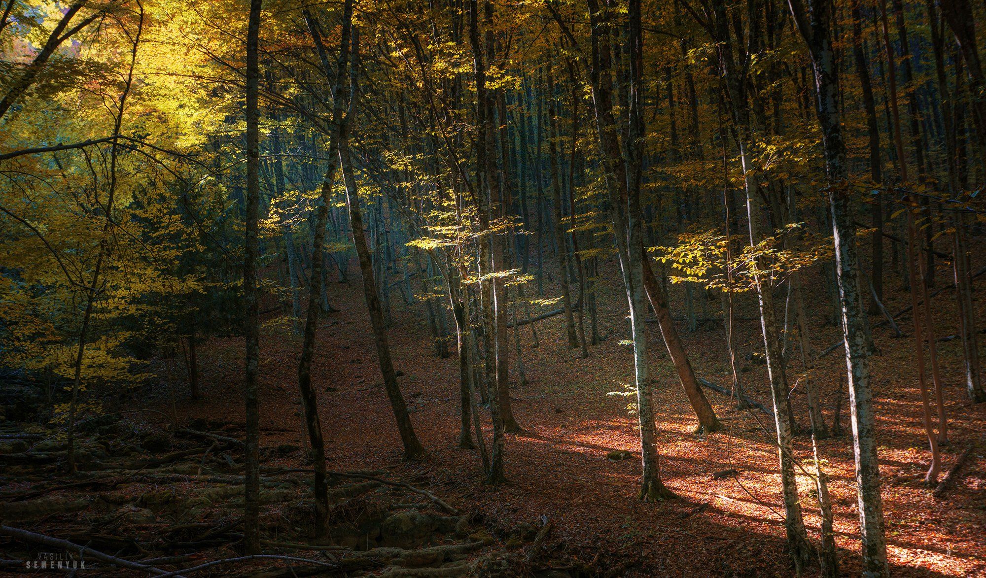 крым, лес, деревья, объёмный свет, осень, юсуповское озеро, сары-узень., Семенюк Василий