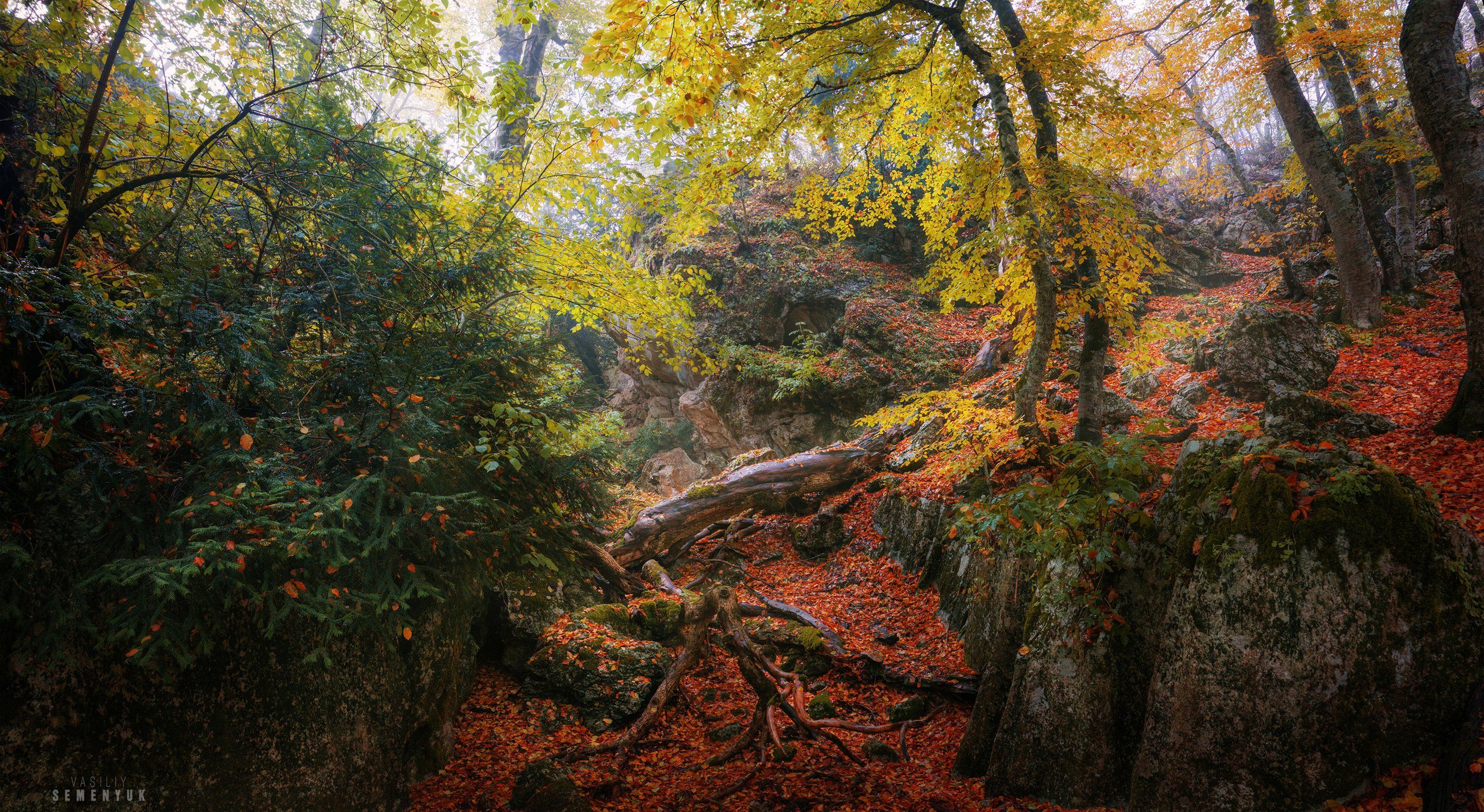 крым, чатыр-даг, осень, тисовое ущелье, туман., Семенюк Василий