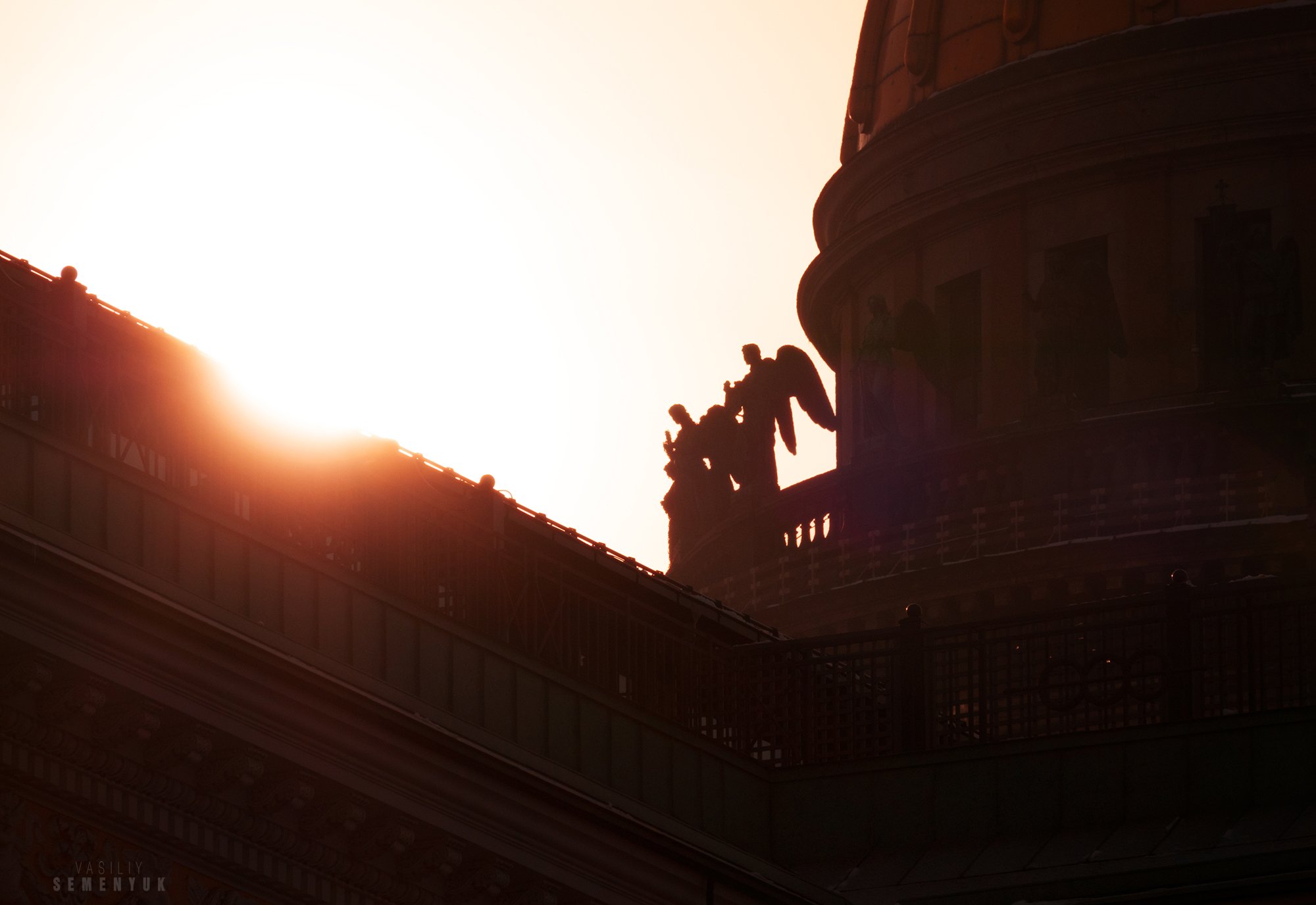 санкт-петербург, исаакиевский собор, скульптуры, ангелы, солнце, закат, настроение., Семенюк Василий
