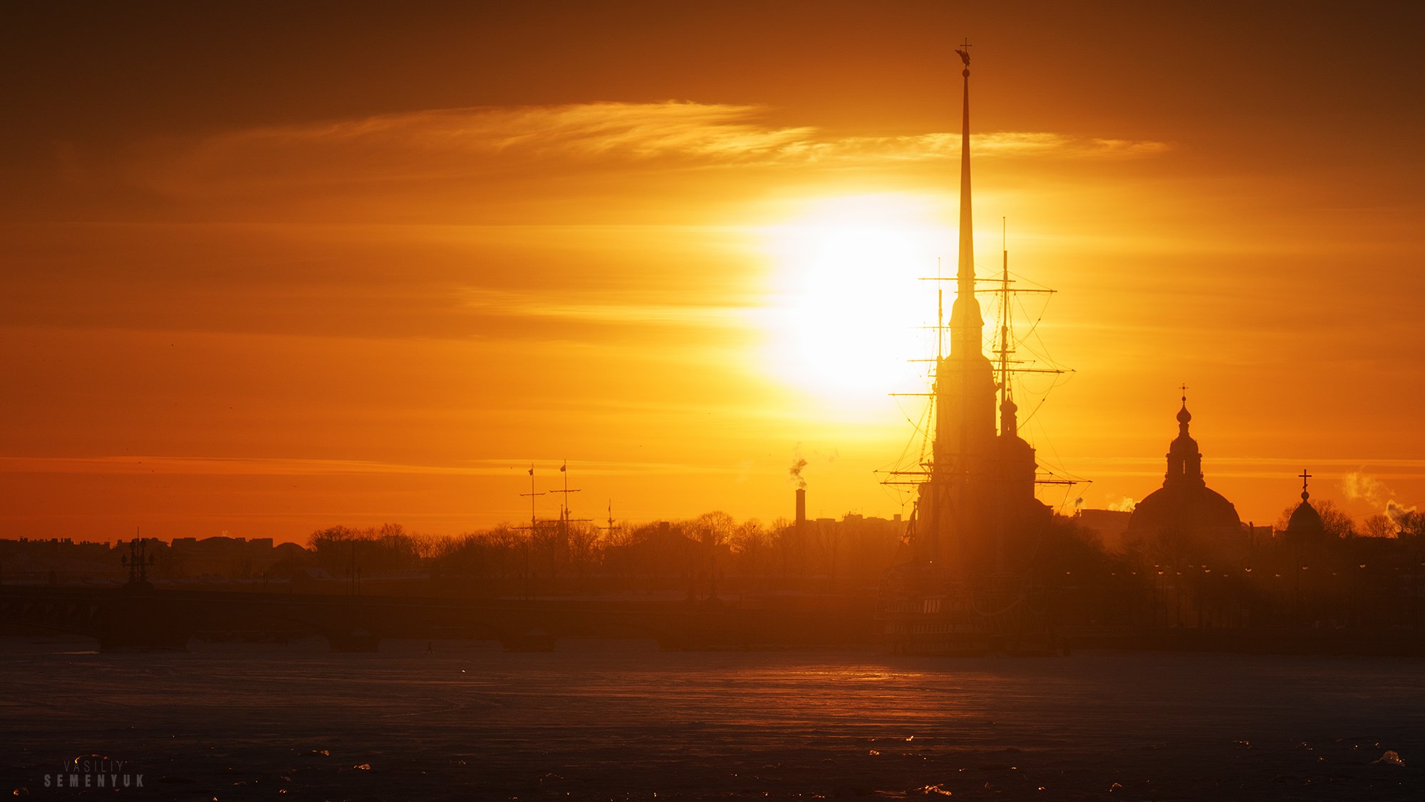 зима, питер, петропавловская крепость, закат, нева, лёд., Семенюк Василий