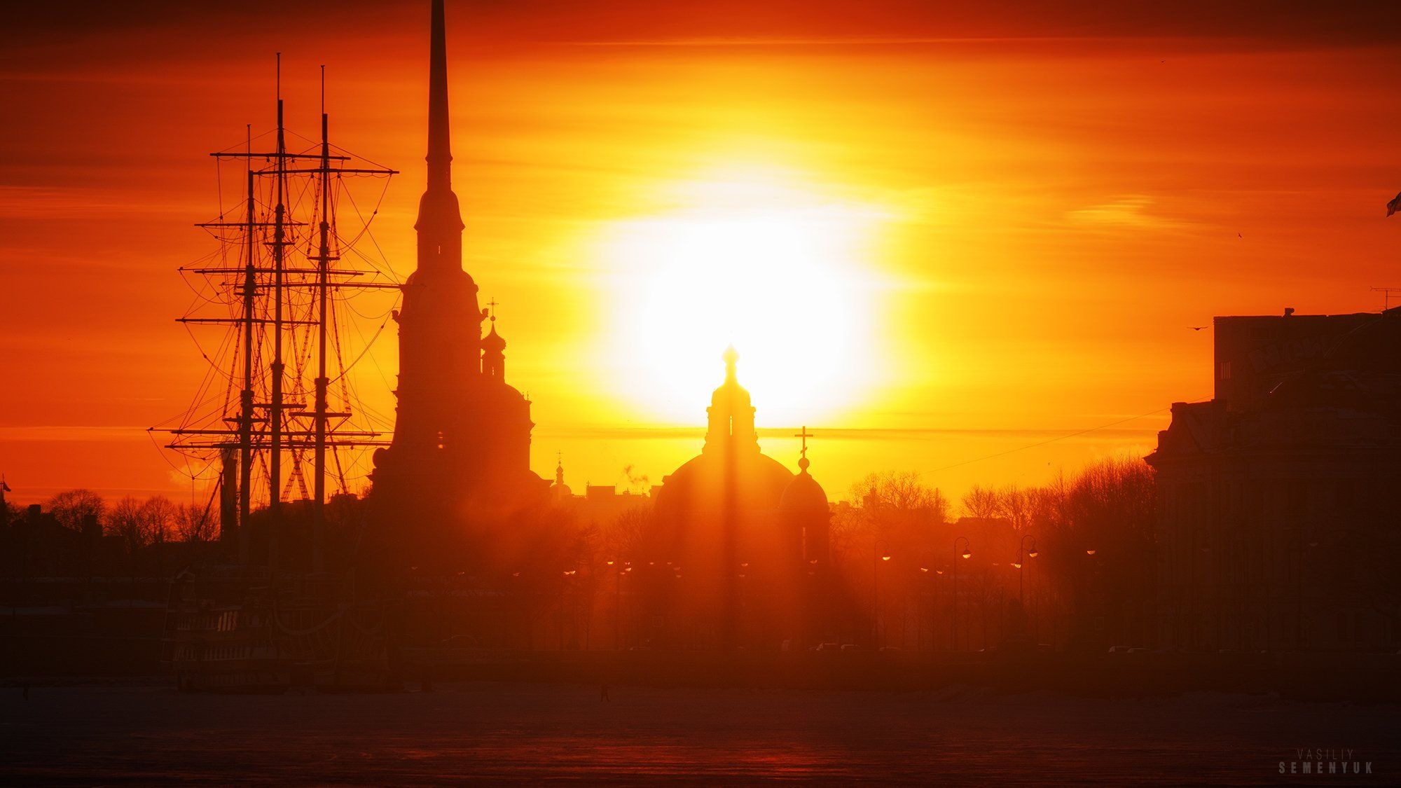зима, питер, петропавловская крепость, закат, нева, лёд, свет., Семенюк Василий