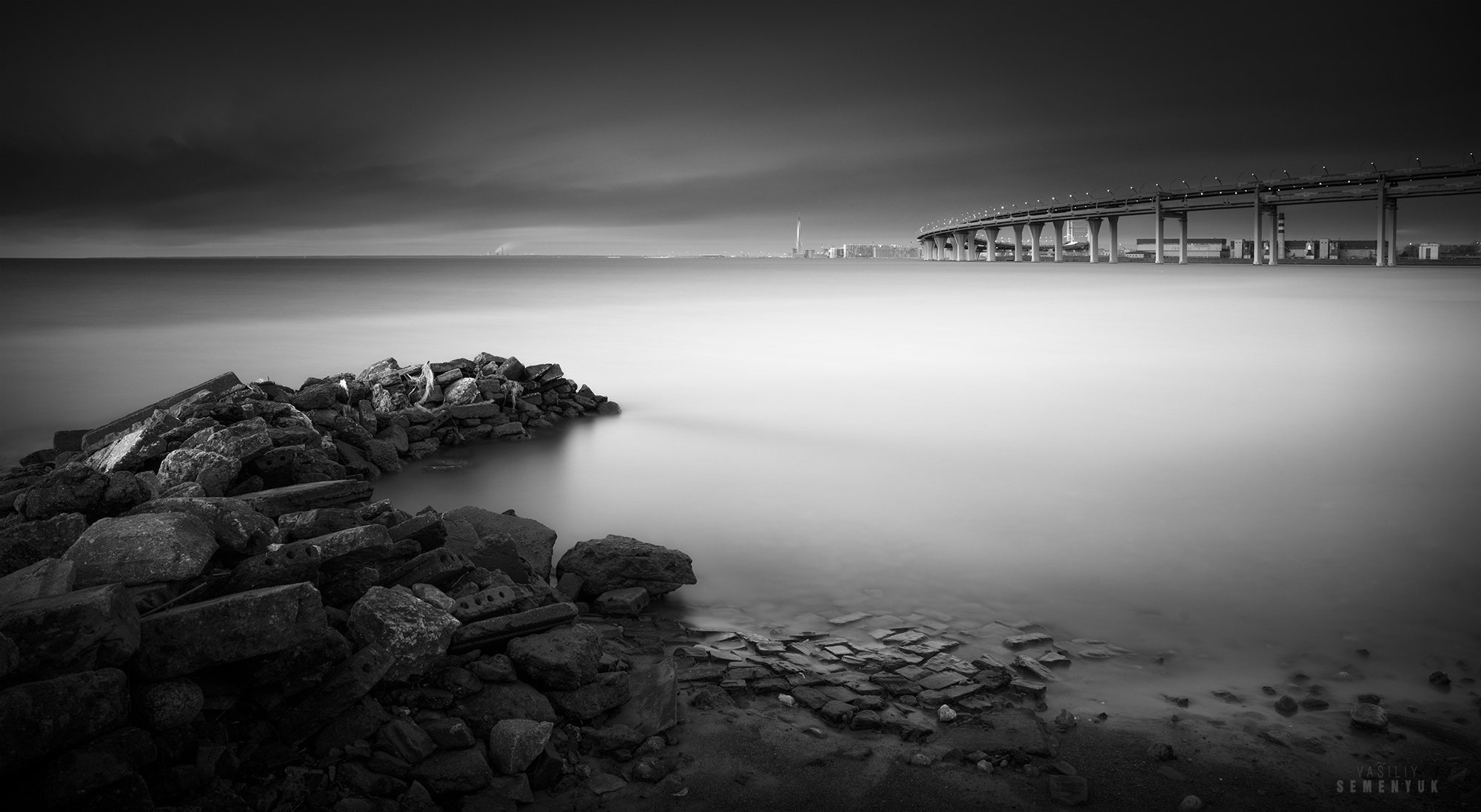 питер, зсд, залив, облака, ч/б., Семенюк Василий