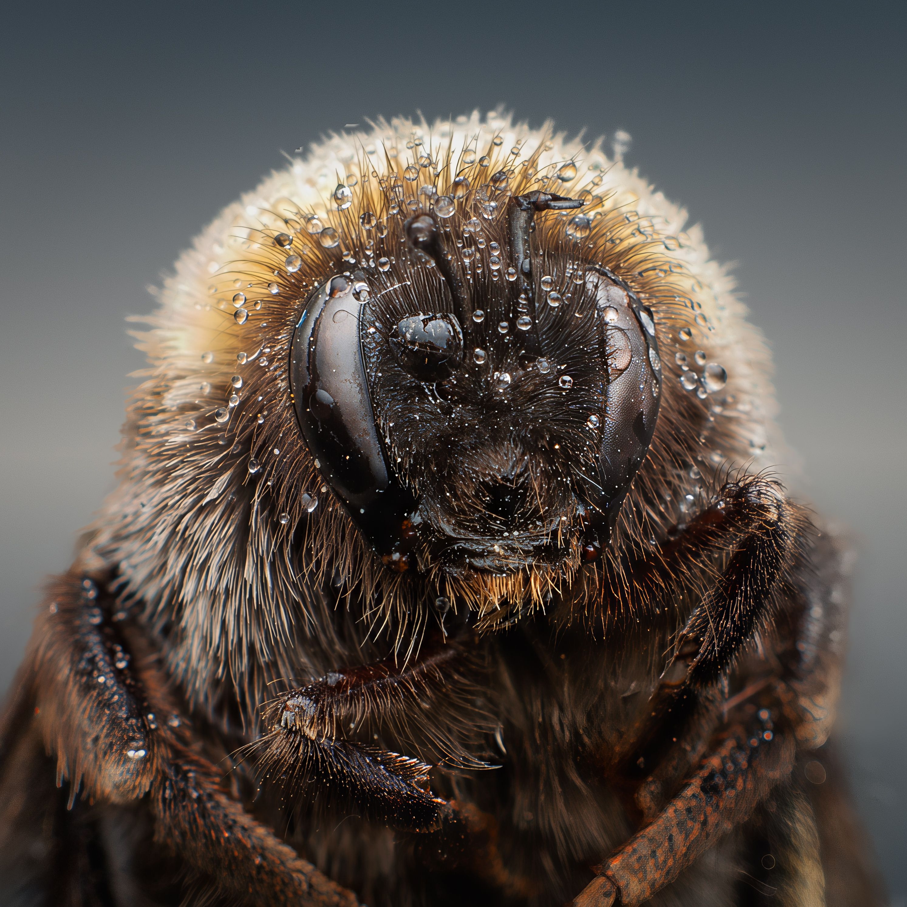 В этом макро-портрете пчелы каждая деталь — от блестящих глаз до тонких волосков — выглядит как часть живой симфонии природы. Снимок, созданный Валерием Коноваловым, захватывает момент, когда насекомое, возможно, только что вышло из улья или промокло в росе. Влажность подчеркивает текстуру тела, придавая изображению почти скульптурную выразительность. Это не просто фото — это приглашение в мир, который мы обычно не видим.