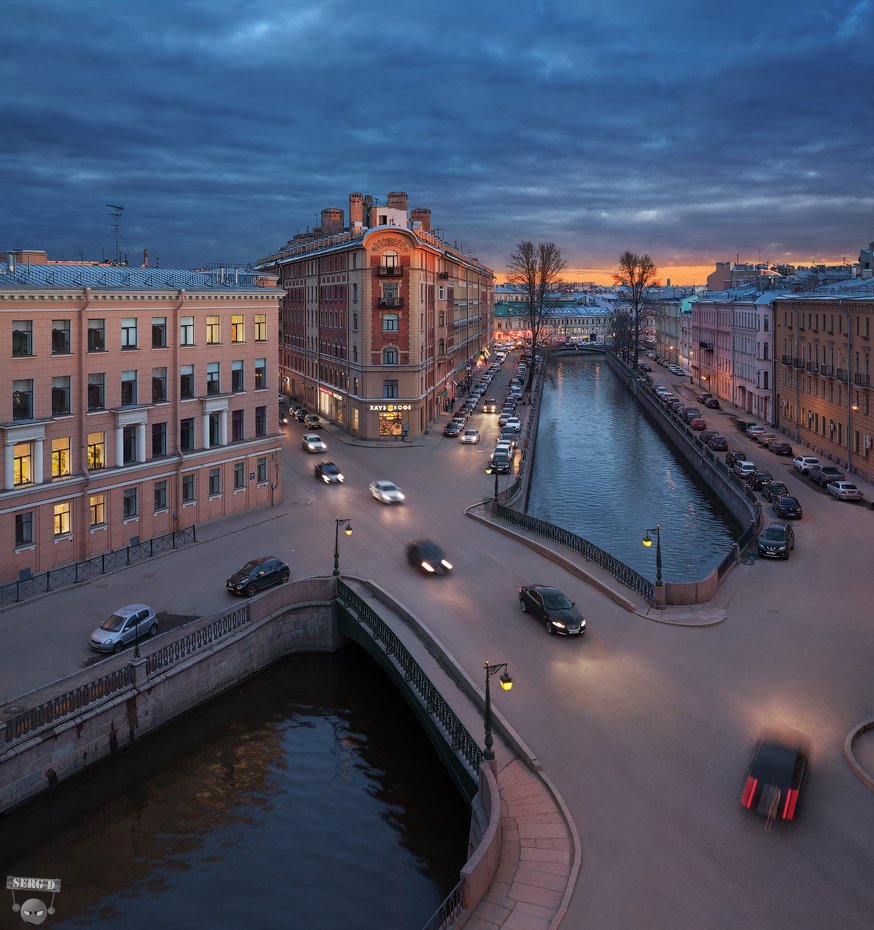 панорама из двух горизонтальных кадров на 35мм, композитное изображение - небо снято за 15 минут до включения городского освещения, дубли на высоком iso для ловли автомобилей в кадре, дубли для устранения пересветов, ретушь визуального мусора, без фильтров