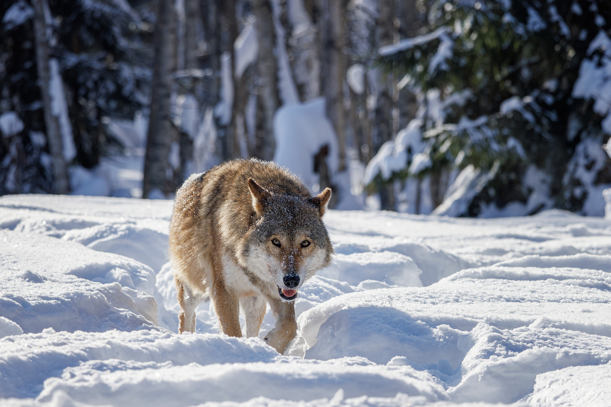 Сергей, волк в снегу — сильный кадр. Глаза, осанка, свет на шерсти — всё работает. Лес на заднем плане не мешает, а подчёркивает одиночество. Хорошо снято.