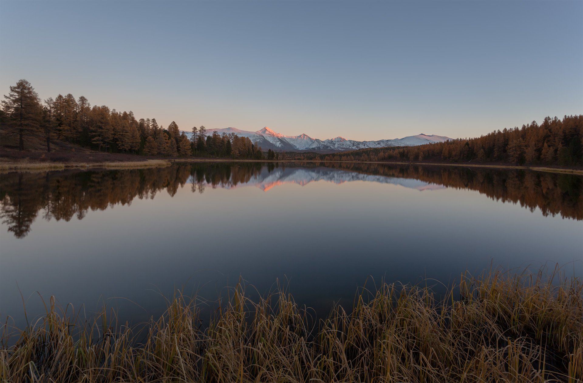 Хорошо! Я бы ещё сделал вариант, убрав всё лишнее, оставить горы, небо, отражение - всё крупно! Да, неб слишком много пустого, его можно резать на две трети, как-то так! )