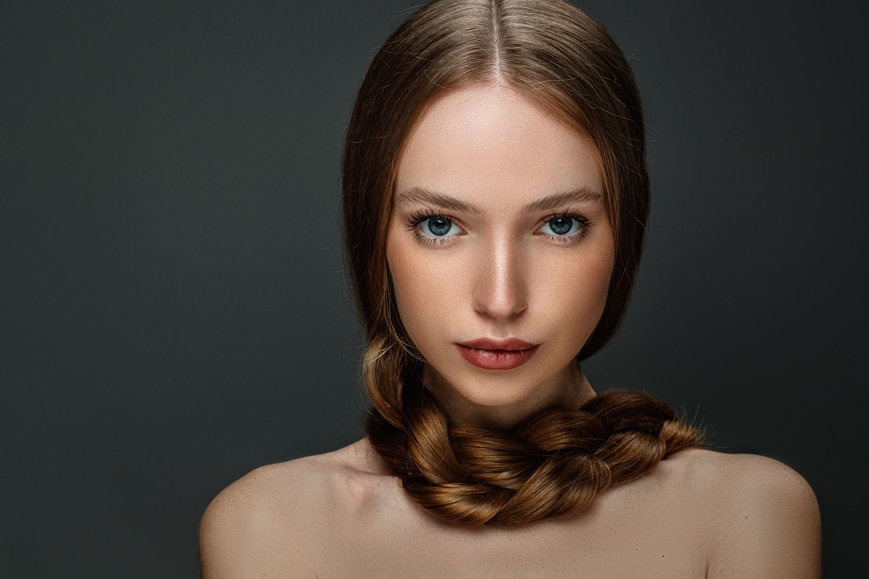 Студийный портрет, где акцент сделан на изысканной простоте. Коса, сплетённая у основания шеи, создаёт визуальный акцент, не отвлекая от лица. Нейтральный фон и мягкий свет подчёркивают естественную красоту модели. Фотография передаёт спокойствие и сдержанную элегантность. Работа Сергея Сорокина демонстрирует мастерство в портретной съёмке.