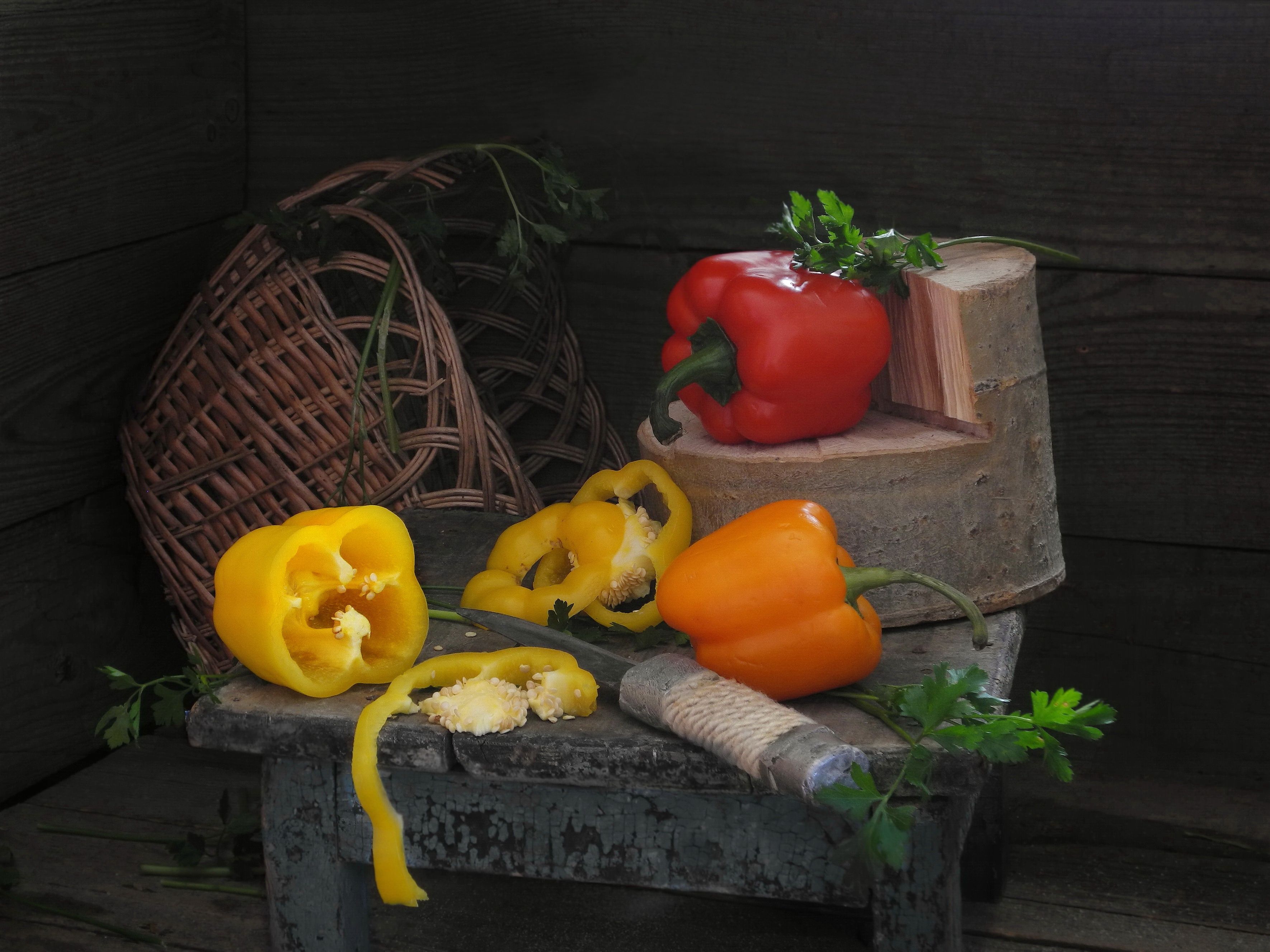 перец, овощи, зелень, петрушка, укроп, нож, корзина,, Сергей Фунтовой