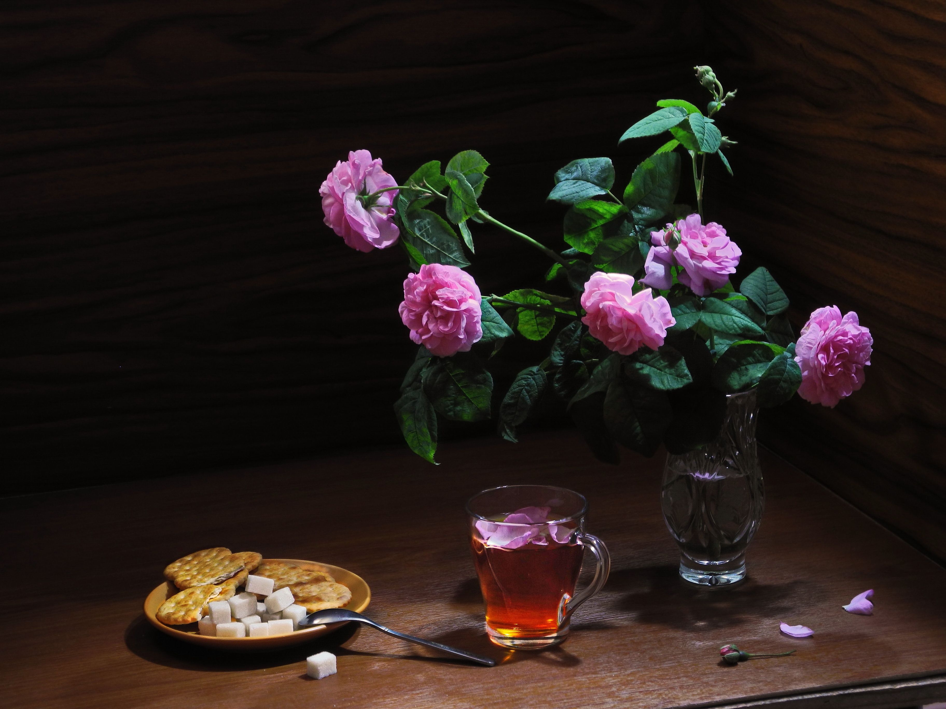 чайная роза, чай, напиток, стакан, чашка, печенье,, Сергей Фунтовой