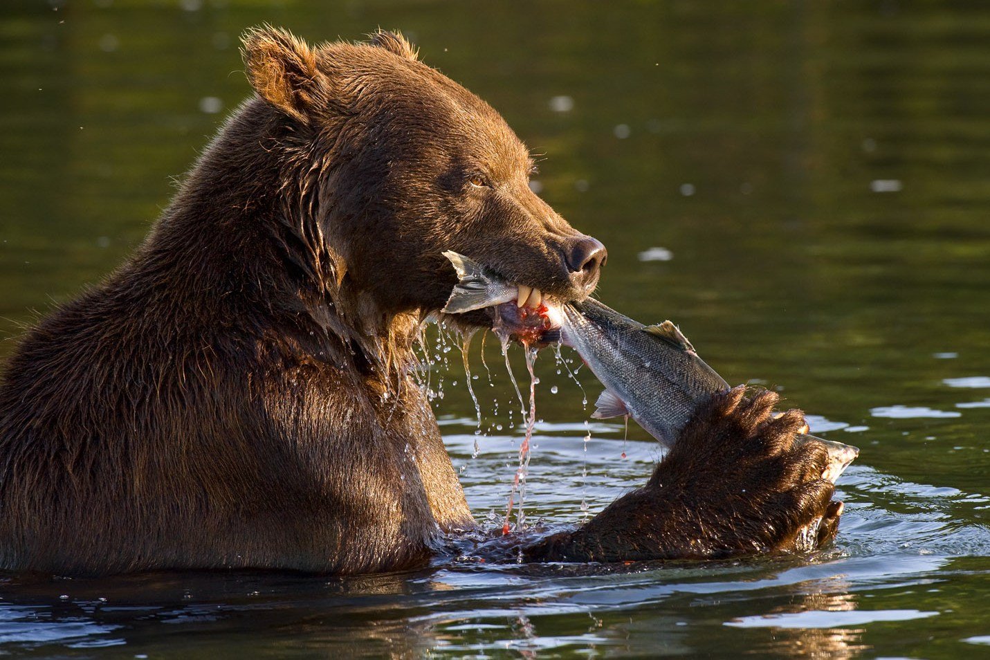Наблюдать за процессом рыбной ловли у медведей - одно удовольствие ! Неловкая молодёжь и старые, матёрые рыбаки , наглые молодые мамаши, отбирающие рыбу у юнцов и степенные матроны,не делающие лишних движений и совершающие один быстрый и точный бросок.Созерцание за ними настолько увлекательно, что часы летят за часами, дни за днями и ты ловишь себя на мысли, что уезжать то не хочется ....
