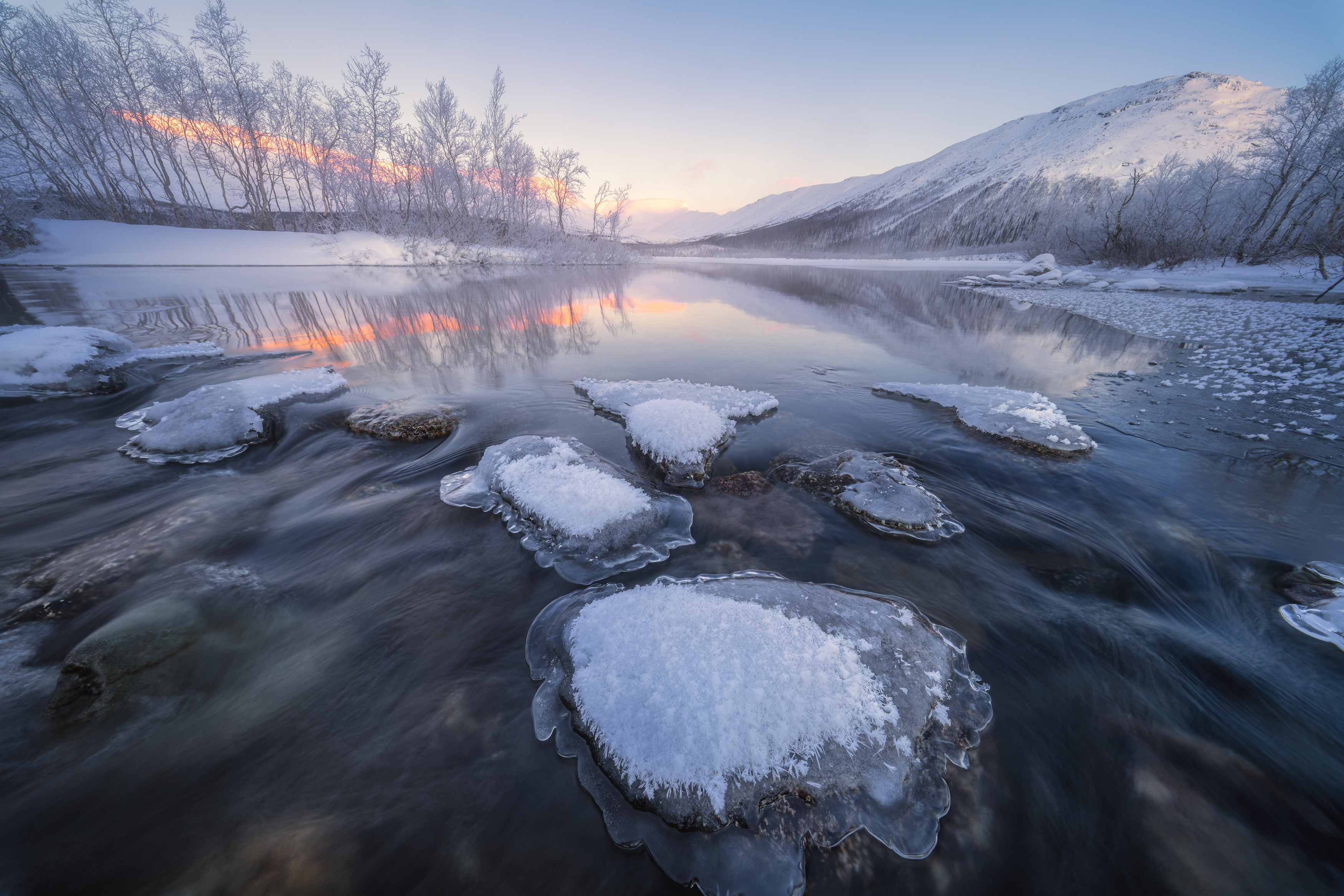 Сергей, снимок — как будто вы вышли на берег и просто посмотрели — и всё, что увидели, осталось на кадре. Вода, лёд, отражение — всё на месте, но при этом вроде бы не статично, а живо. Особенно нравится, как лёд на камнях — будто кто-то аккуратно накрыл их снегом, а вода вокруг — как дым. Утро, и уже чувствуешь, что день только начинается. 🌅