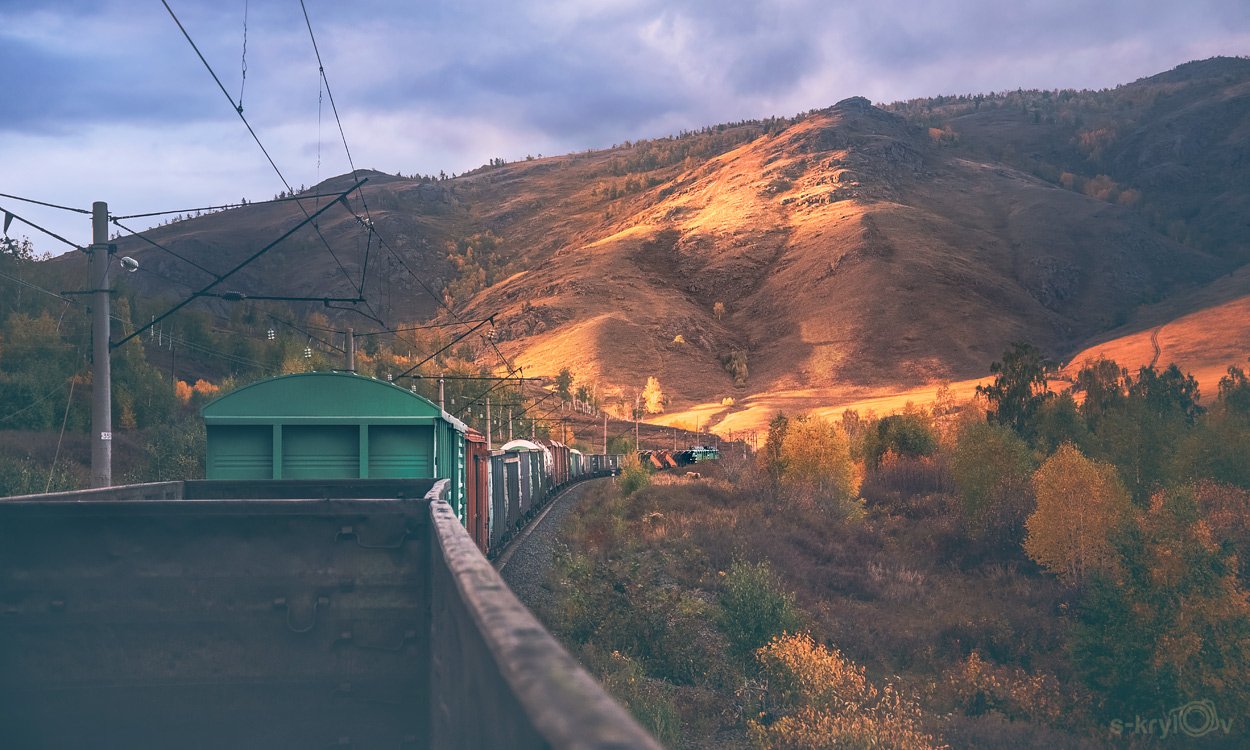 поезд, вагон, ржд, железная дорога, горы, закат, Сергей Крылов