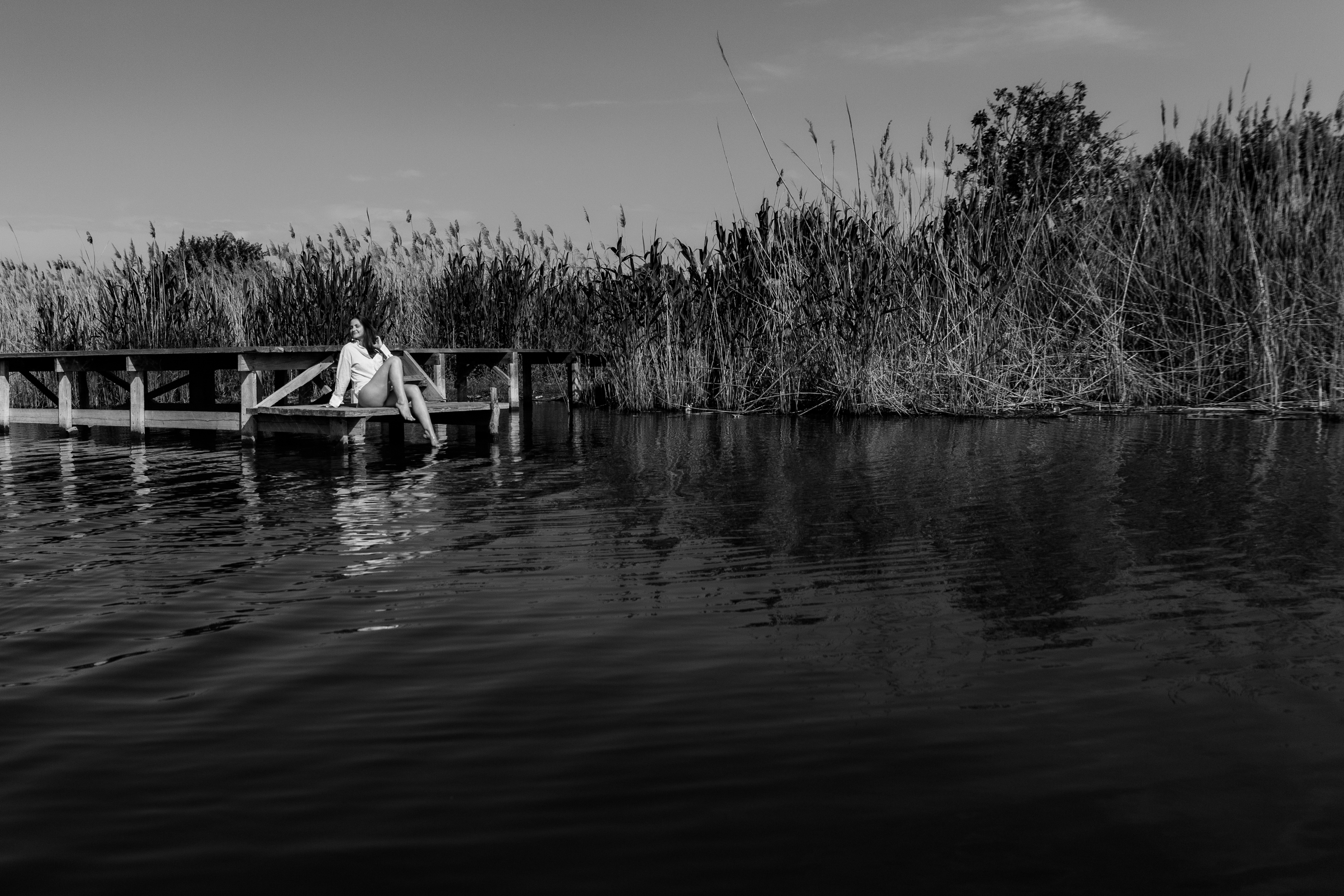 Чёрно-белая палитра усиливает контраст между водой, растительностью и фигурой — композиция чёткая, взгляд удерживается в центре. Деревянный мостик добавляет глубину, а отражение — динамику. Уважаемый Сергей, Вы подобрали удачный ракурс.