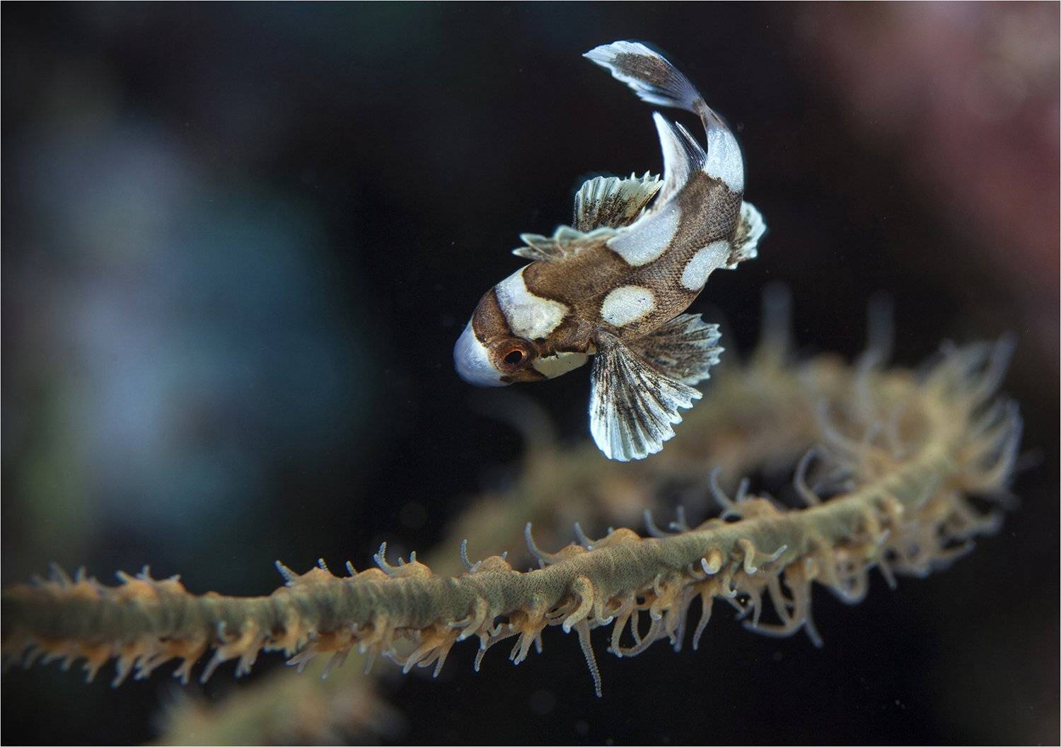 Малек сладкогуба в постоянном движении как бабочка, и понять где у него что во время движения соверщенно невозможно, тем более осознанно сфокусироваться. Результат можно увидеть только при обработке ! Филиппины, о. Минданао, май 2016