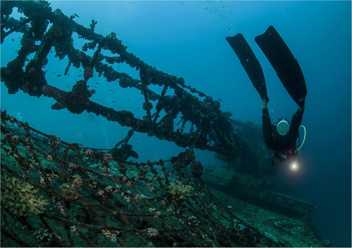 Прямо возле острова Мачафуши на глубине до 35м лежит 52 метровое японское торговое судно, потерпевшее крушение в марте 1998г..