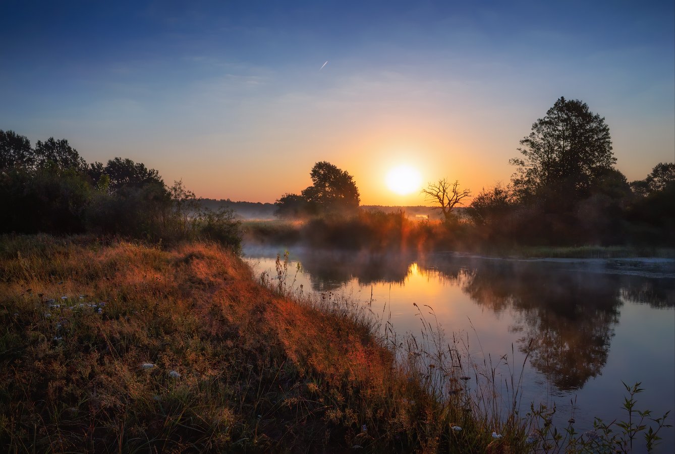 лето, река, рассвет, дымка,, Сергей Шабуневич