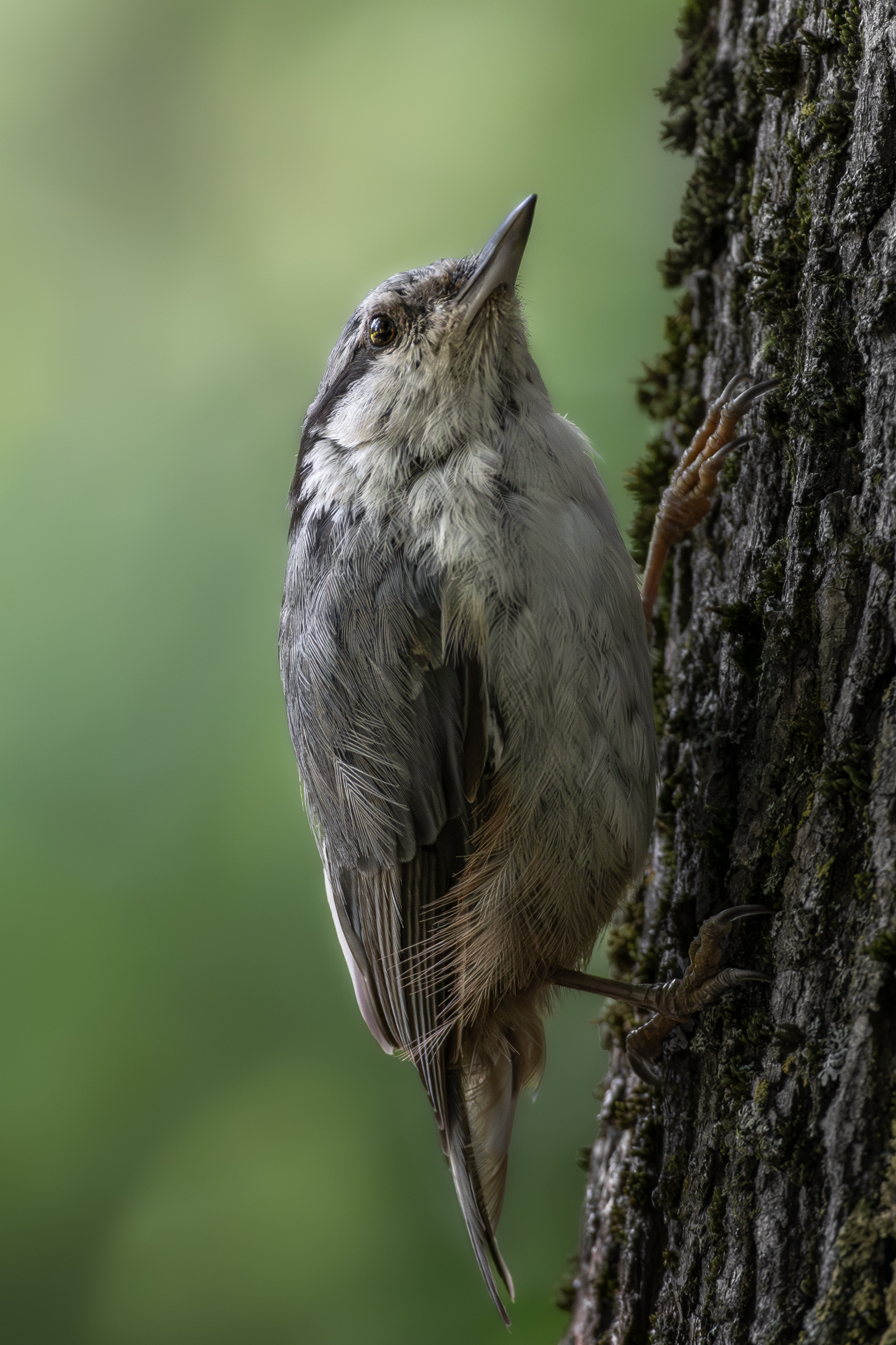 На снимке запечатлён поползень, цепляющийся к коре дерева и вглядывающийся вверх. Его поза и выражение лица отражают бдительность и естественную осторожность. Фотография передаёт атмосферу тихого леса, где каждое движение — часть сложного экосистемного баланса. Работа Полины Шальневой демонстрирует мастерство наблюдения и точность в кадре.