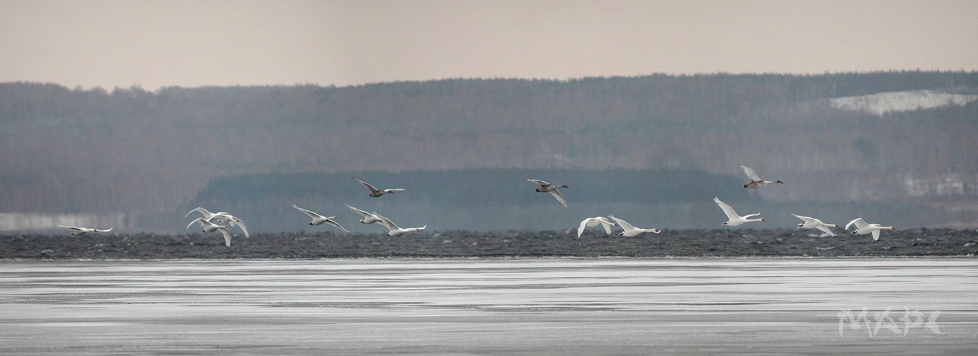 животные птицы лебеди ноябрь озеро кандры-куль башкортостан, Шангареев Марс