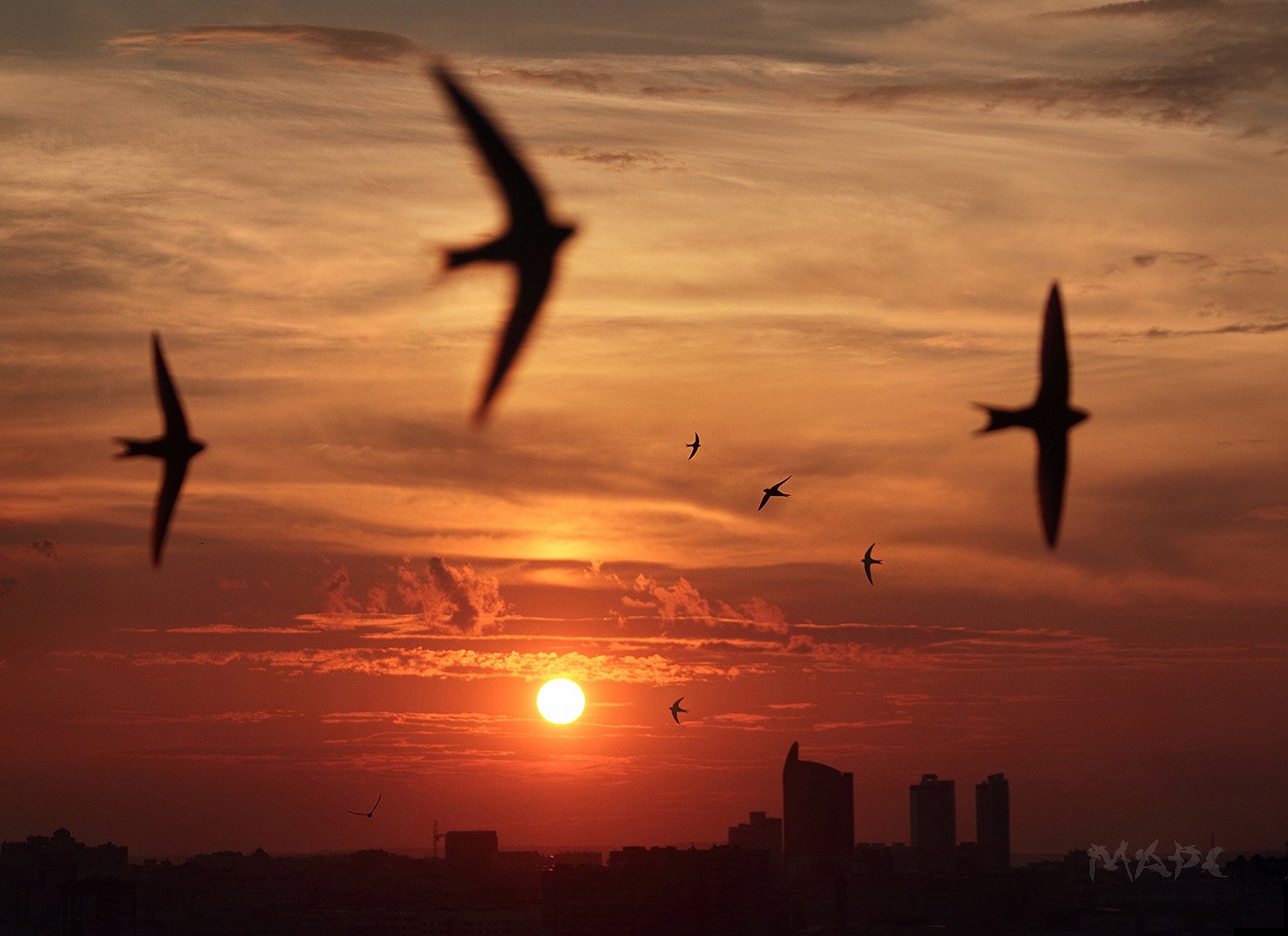 птицы стрижи город закат, Шангареев Марс