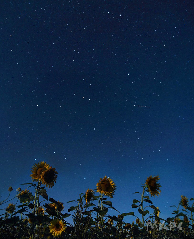ночь, август, звезды, подсолнухи, Шангареев Марс